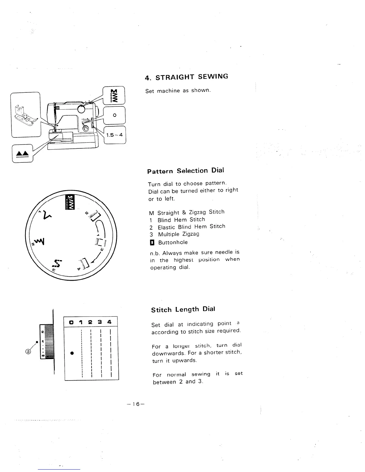 Singer 977 - Straight Sewing; Pattern Selection Dial; Stitch Length Dial