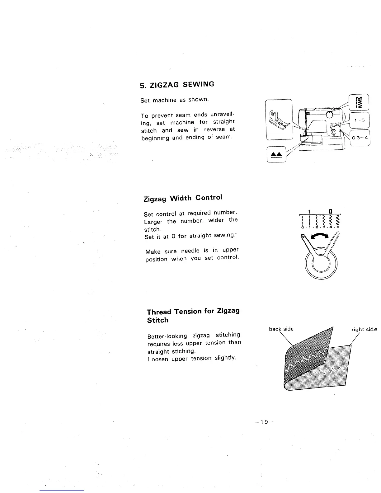 Singer 977 - Zigzag Sewing; Zigzag Width Control; Thread Tension for Zigzag Stitch