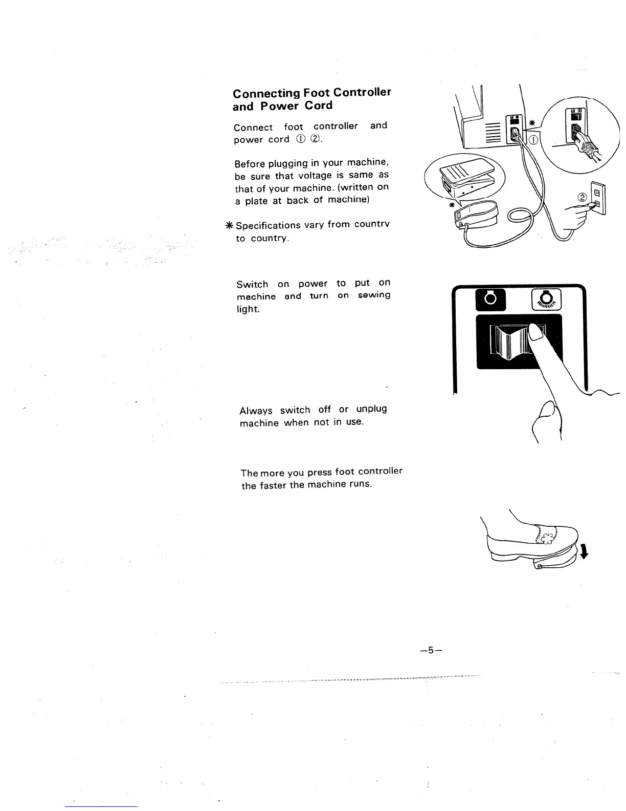 Singer 977 - Connecting Foot Controller and Power Cord