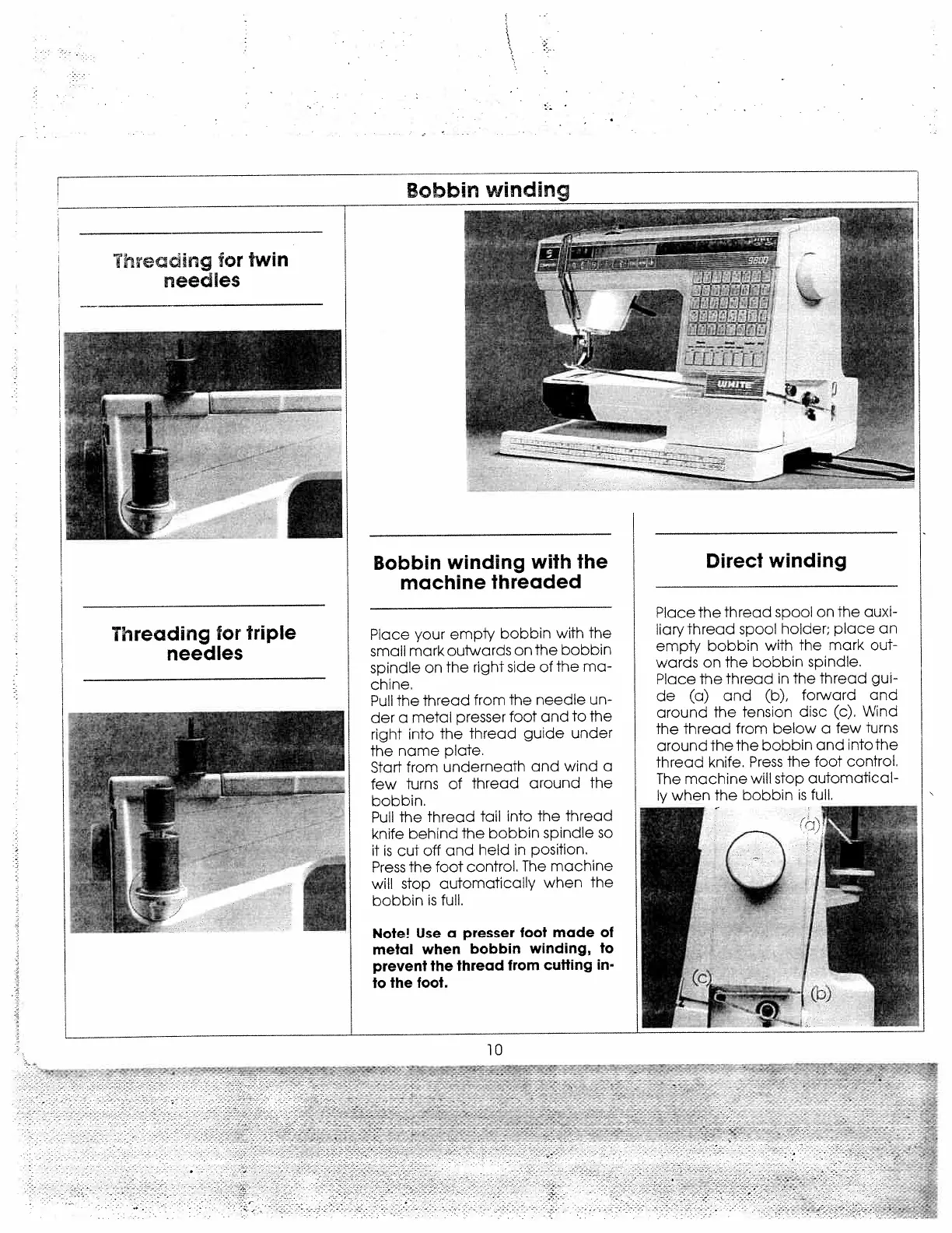 Singer 9800 - Bobbin Winding and Needle Threading; Bobbin Winding Methods; Twin and Triple Needle Threading