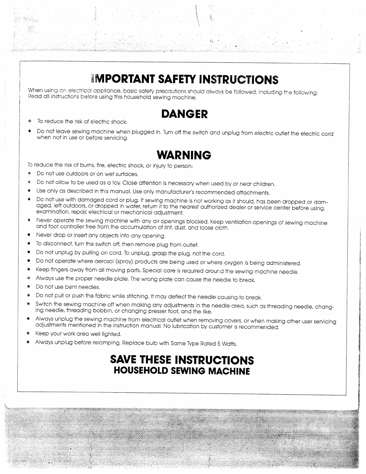 Singer 9800 - IMPORTANT SAFETY INSTRUCTIONS; General Safety Precautions