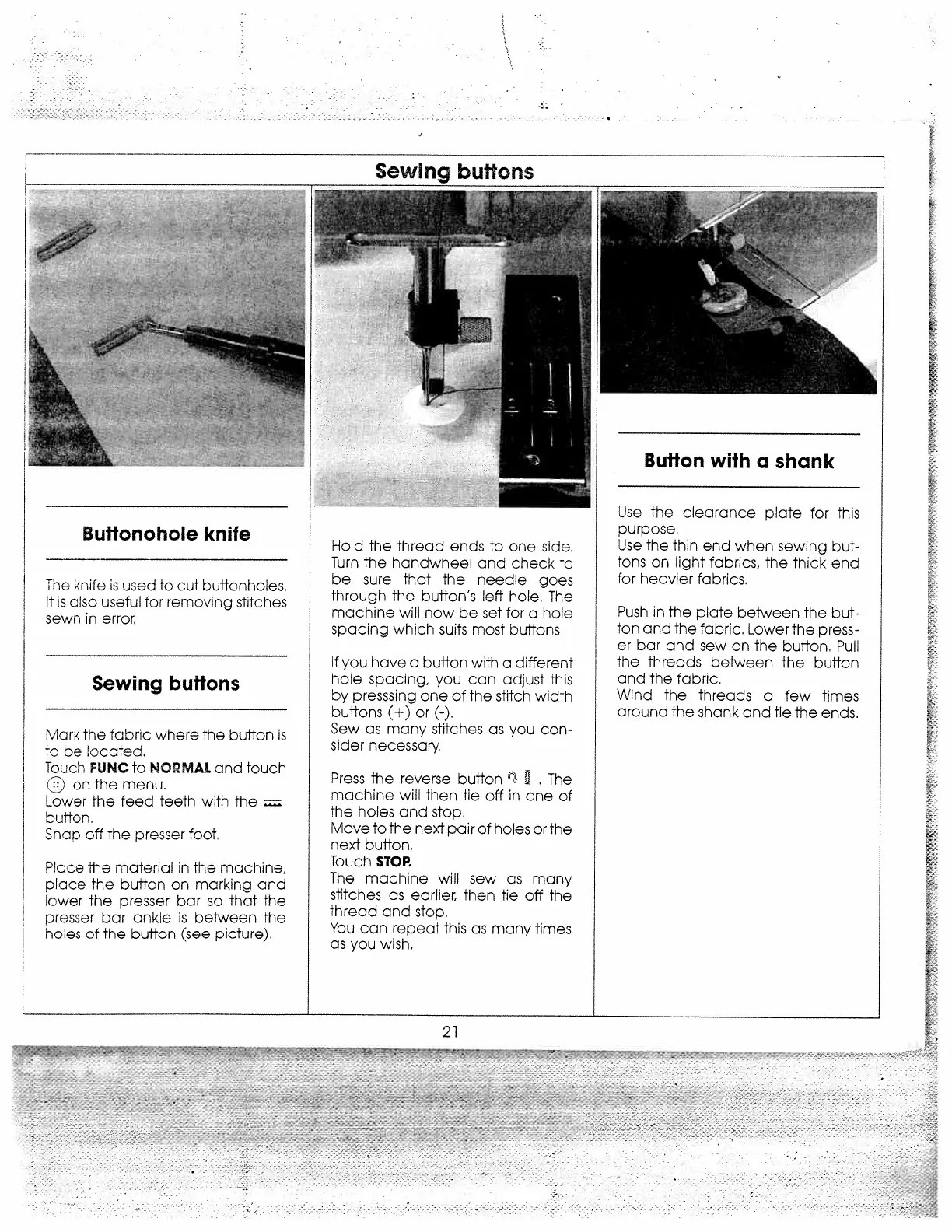 Singer 9800 - Button Sewing Techniques; Buttonhole Knife for Cutting; Sewing Buttons Securely
