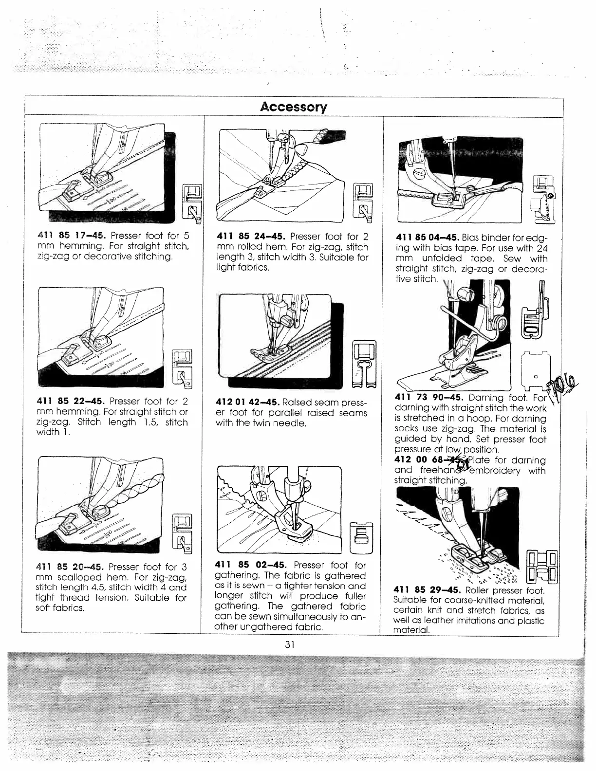 Singer 9800 - Sewing Machine Accessories (Continued); Hemming and Rolled Hem Feet; Darning, Gathering, and Specialty Feet
