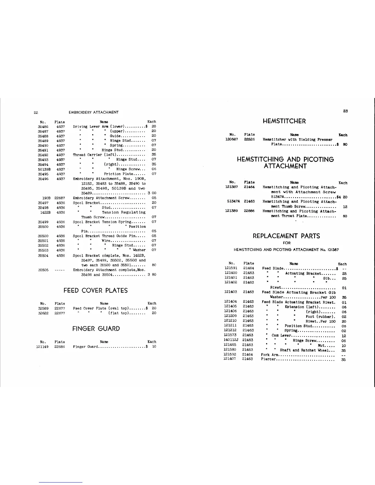 Singer 99-13 - Feed Cover Plates; Finger Guard; Hemstitcher