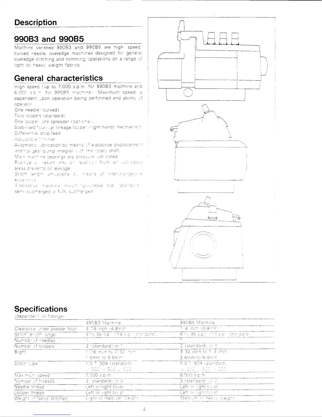 Singer 990B3 - Machine Description; 990 B3 and 990 B5 Model Overview; General Machine Characteristics; Technical Specifications