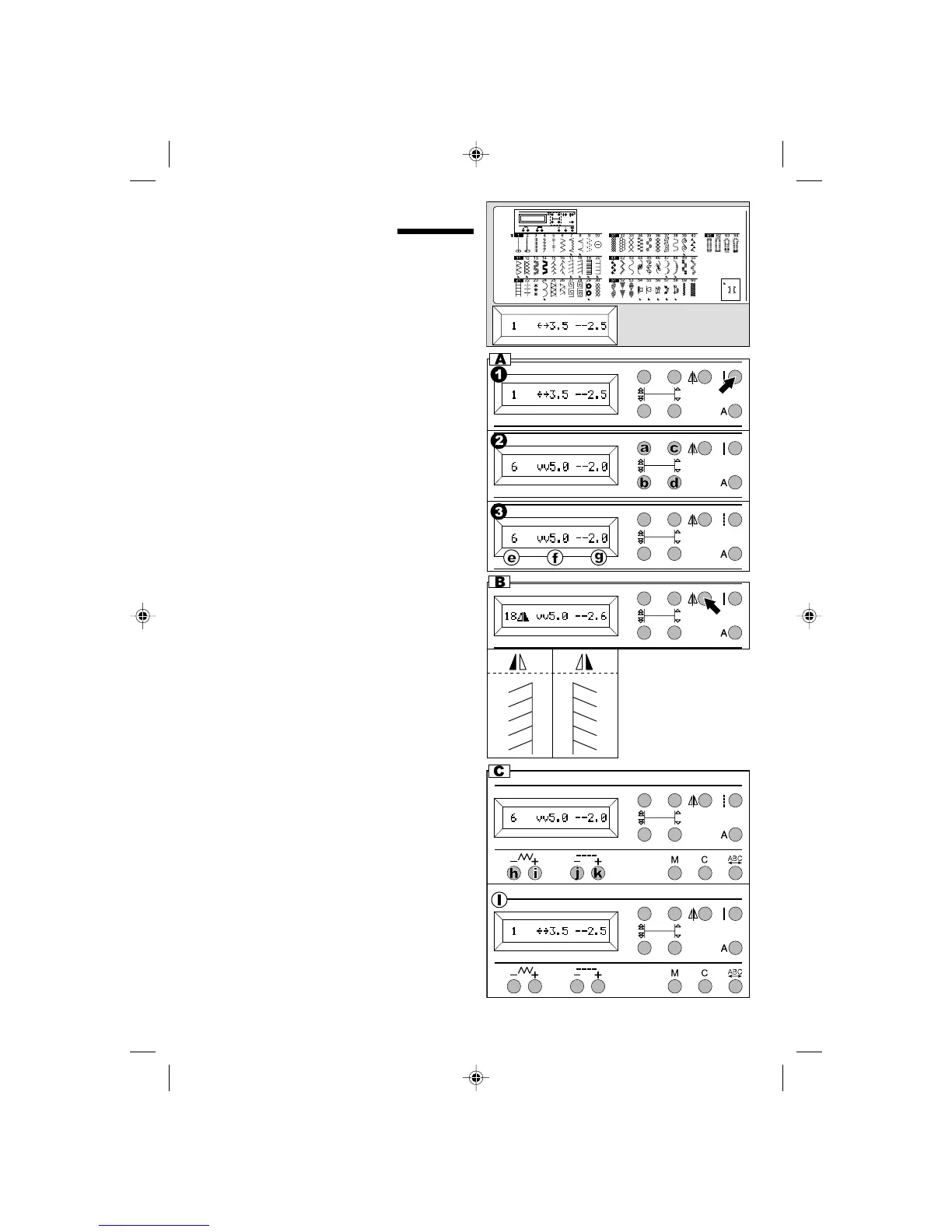 e.Pattern number, f. Stitch Width