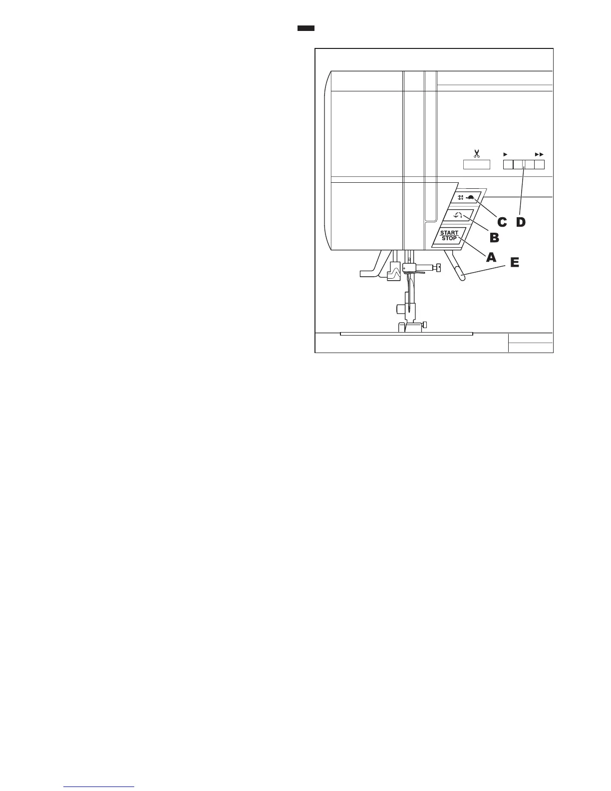 Note: Machine will not start when the presser foot