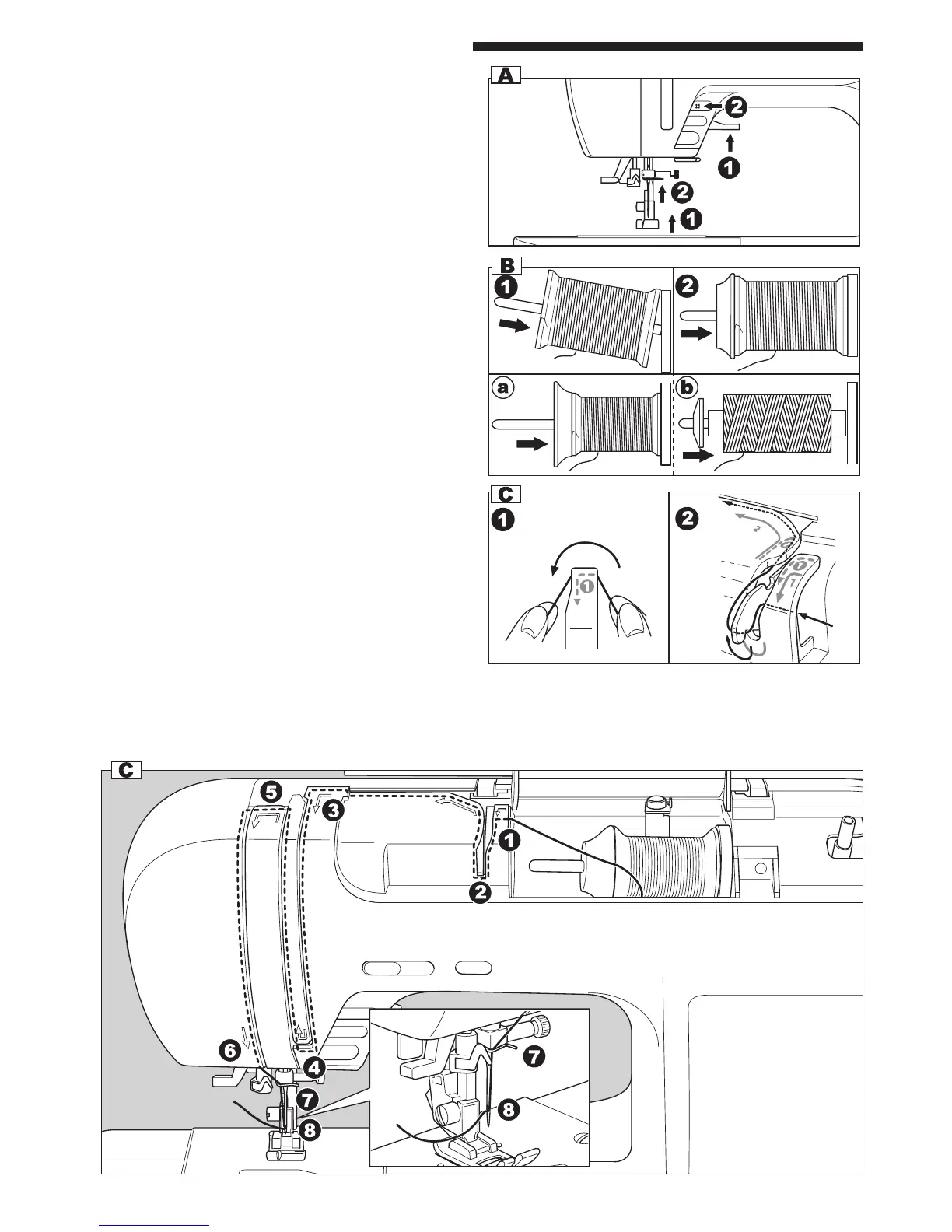 5. To thread the take-up lever, draw thread up and