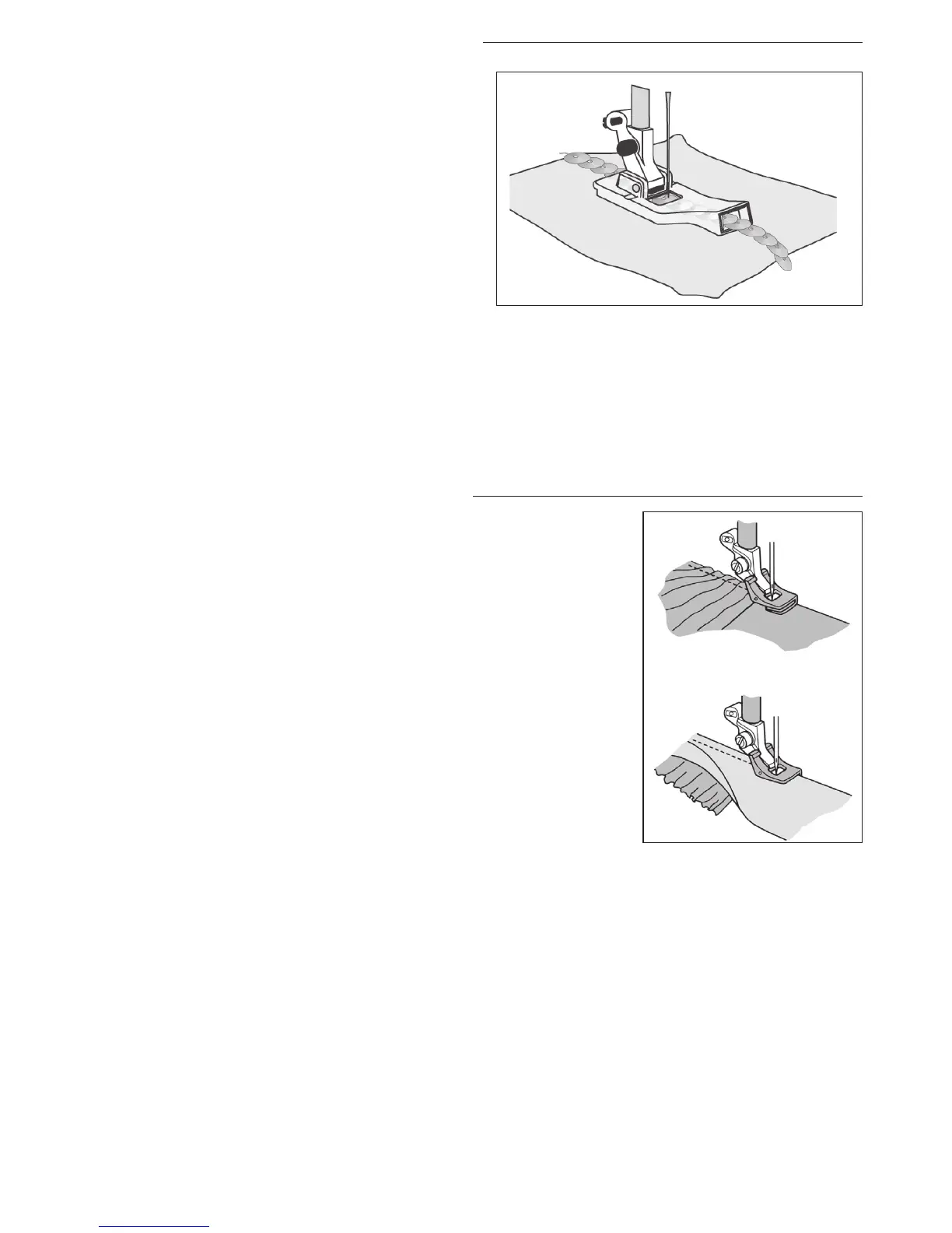 2. Place the fabric to be gathered under the presser foot, right side up.