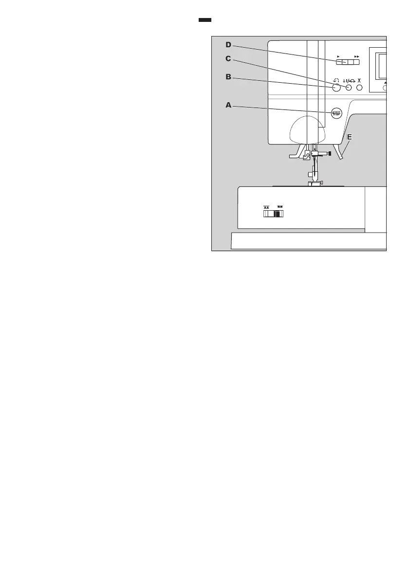 Note: Machine will not start when the presser foot