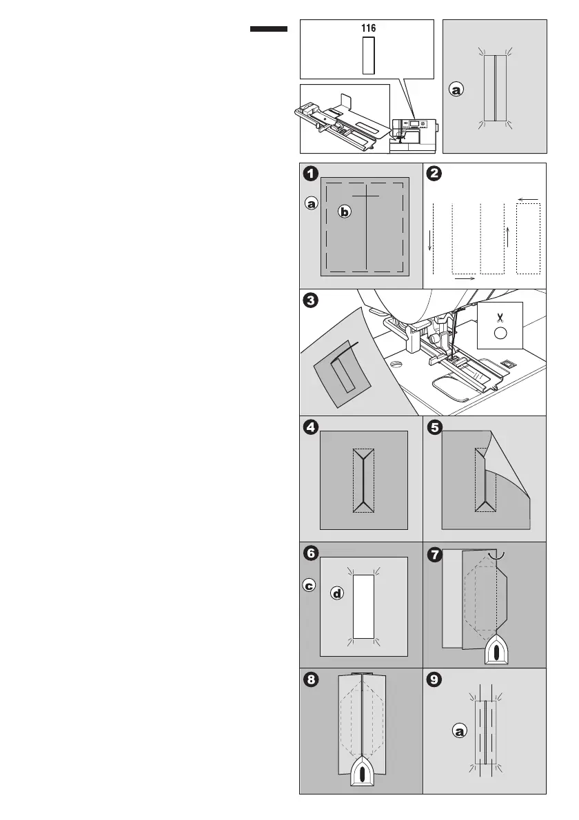 1. Cut a patch of fabric 2.5 cm (1”) wide, 1 cm