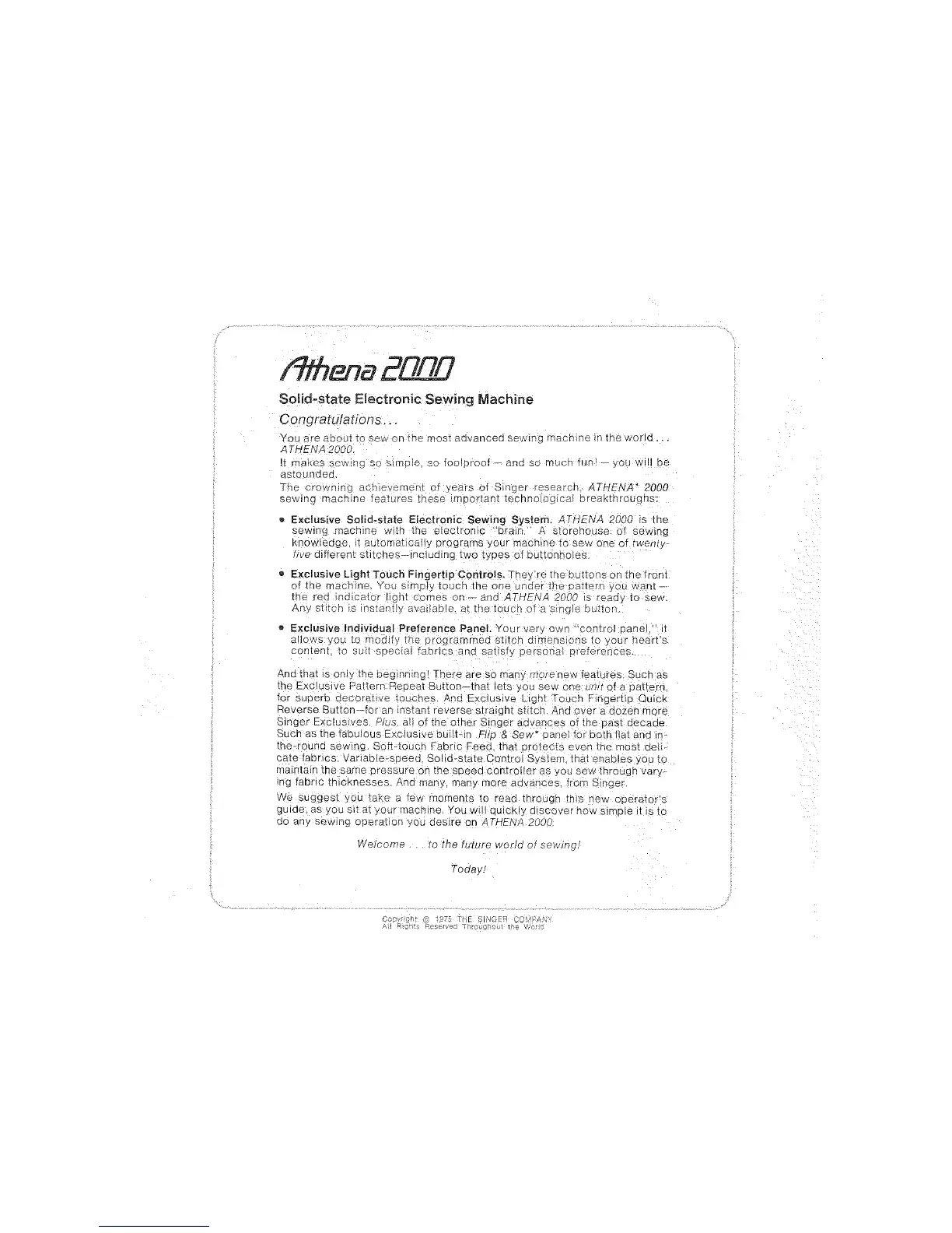 ® Exclusive Sotidostate Electronic Sewi,ng System ATHENA 2000 is the