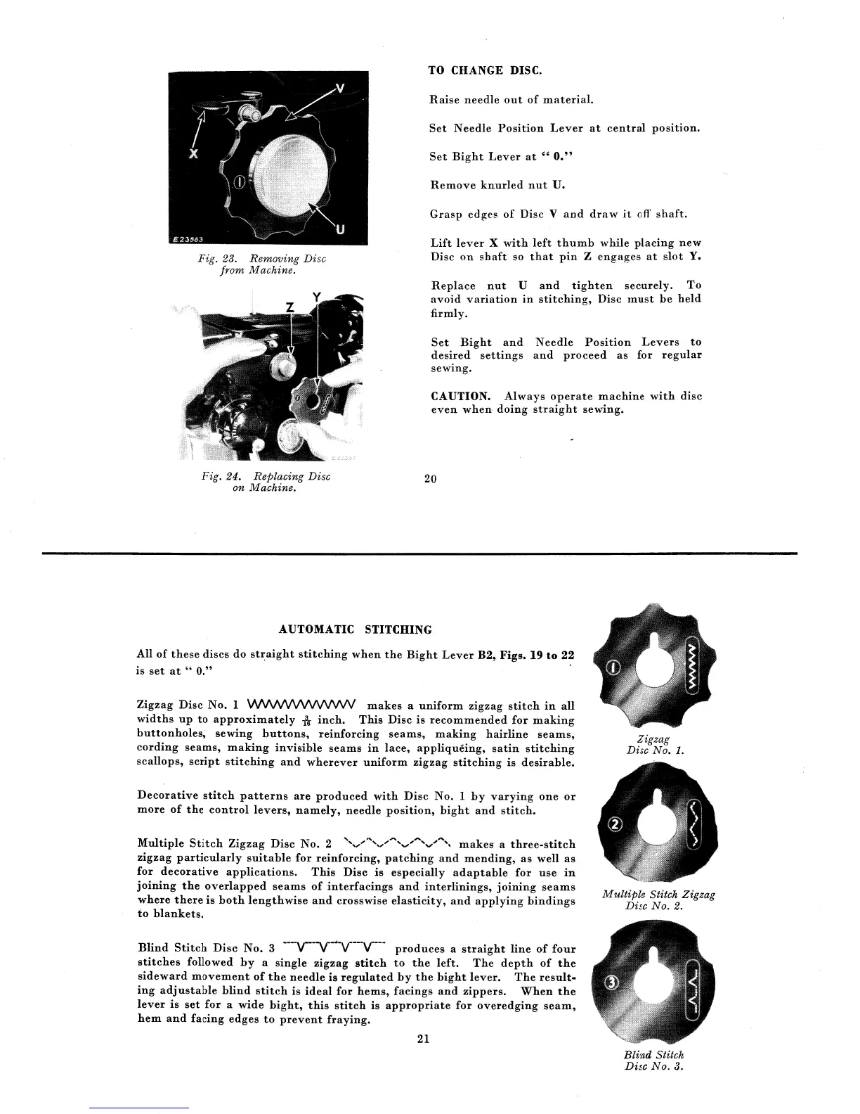 Singer Automatic 306K - Changing and Using Stitch Discs; Procedure for Changing Discs; Overview of Automatic Stitch Designs