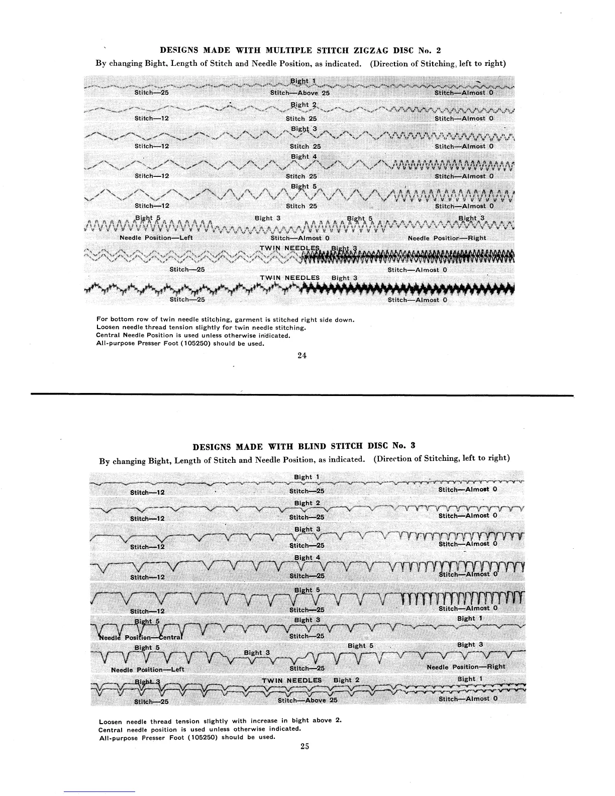 Singer Automatic 306K - Designs Made with Multiple Stitch Zigzag Disc No. 2; Designs Made with Blind Stitch Disc No. 3