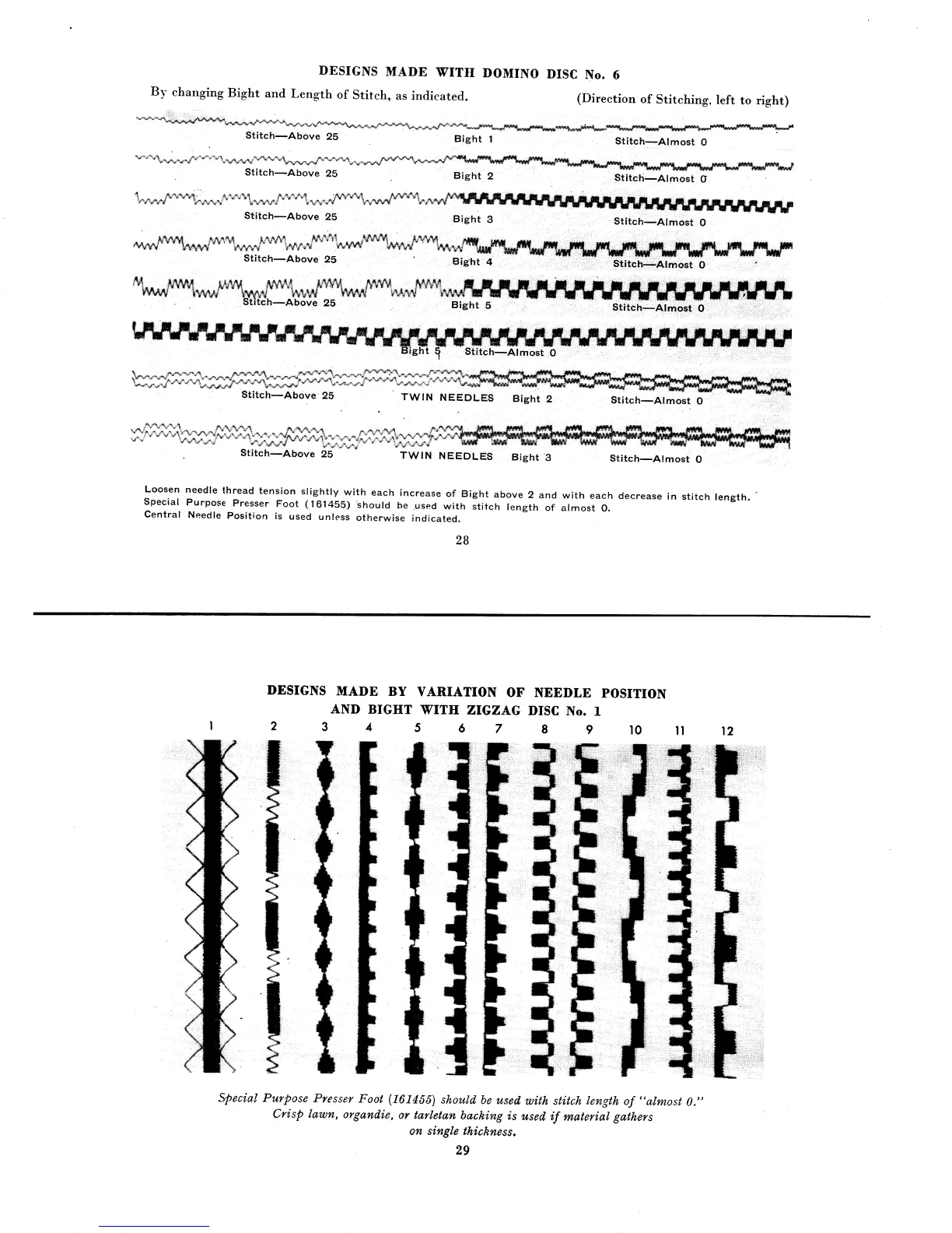Singer Automatic 306K - Designs Made with Domino Disc No. 6; Designs Made by Variation of Needle Position and Bight with Zigzag Disc No. 1