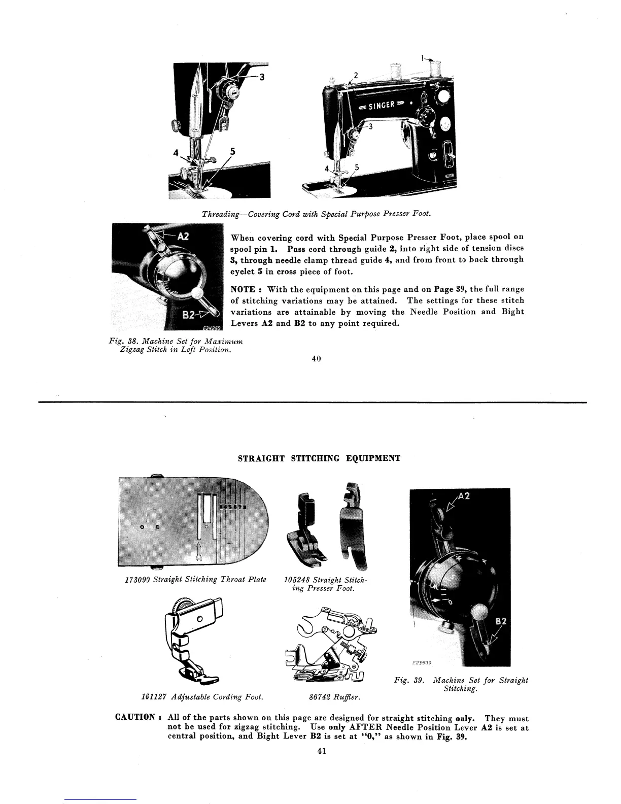 Singer Automatic 306K - Threading-Covering Cord with Special Purpose Presser Foot; Straight Stitching Equipment