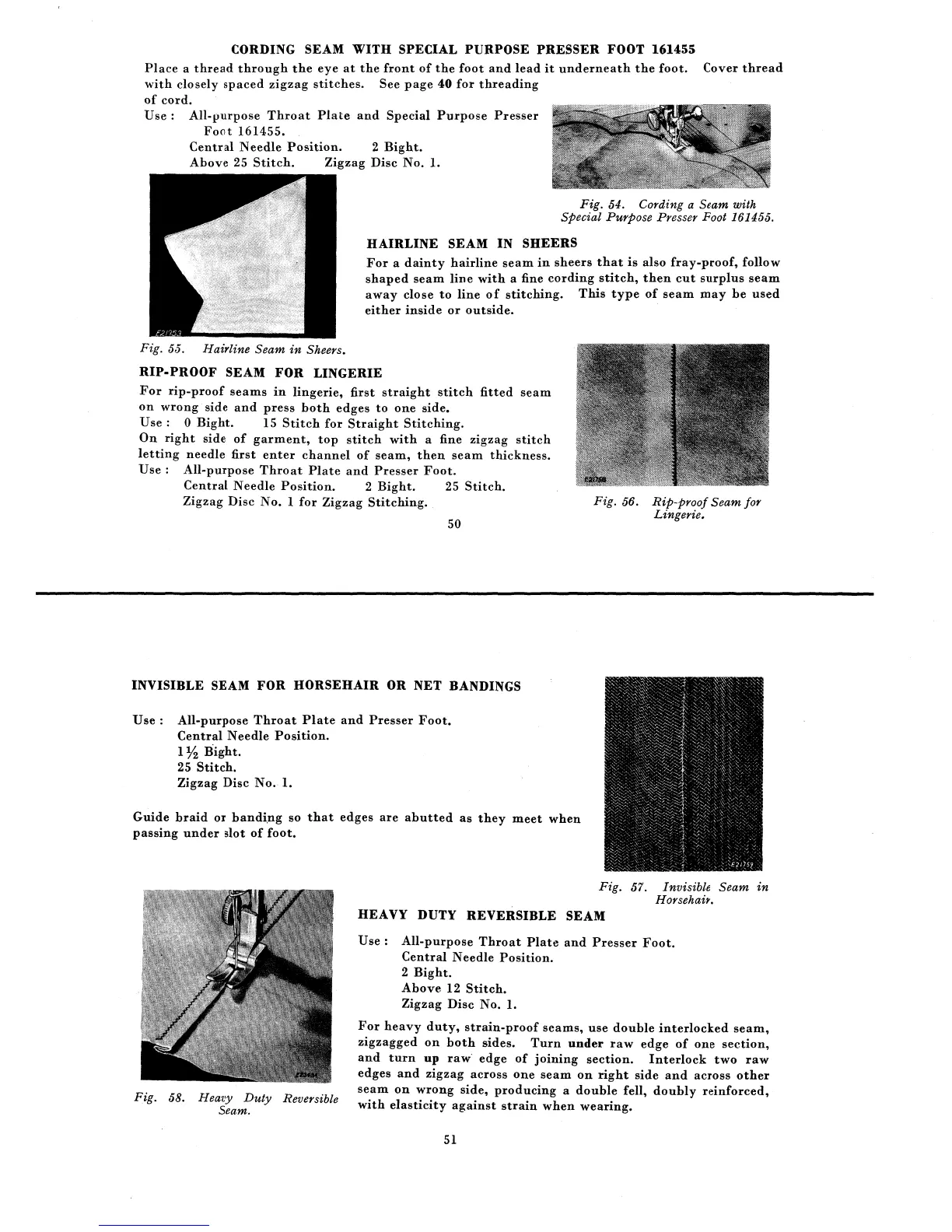 Singer Automatic 306K - Cording Seam with Special Purpose Presser Foot 161455; Rip-Proof Seam for Lingerie; Invisible Seam for Horsehair or Net Bandings; Heavy Duty Reversible Seam