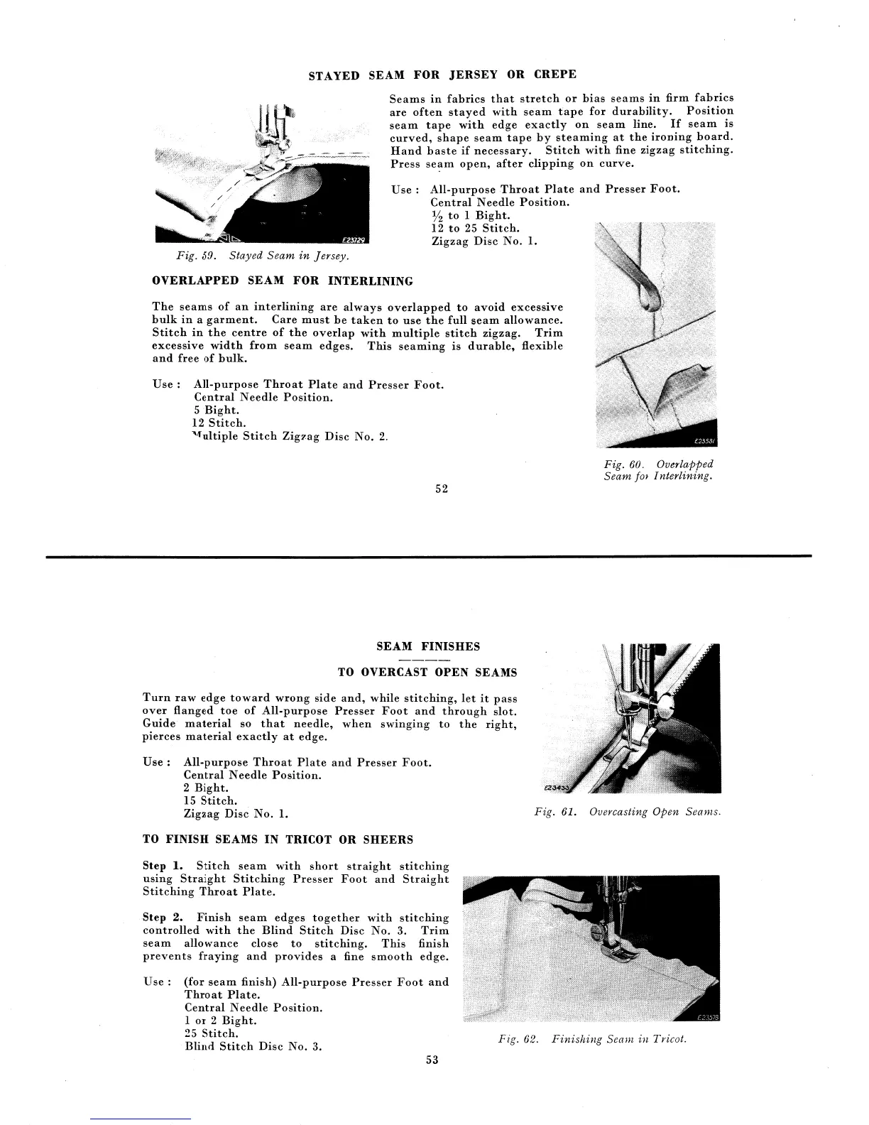 Singer Automatic 306K - Stayed Seam for Jersey or Crepe; Overlapped Seam for Interlining; To Overcast Open Seams; To Finish Seams in Tricot or Sheers