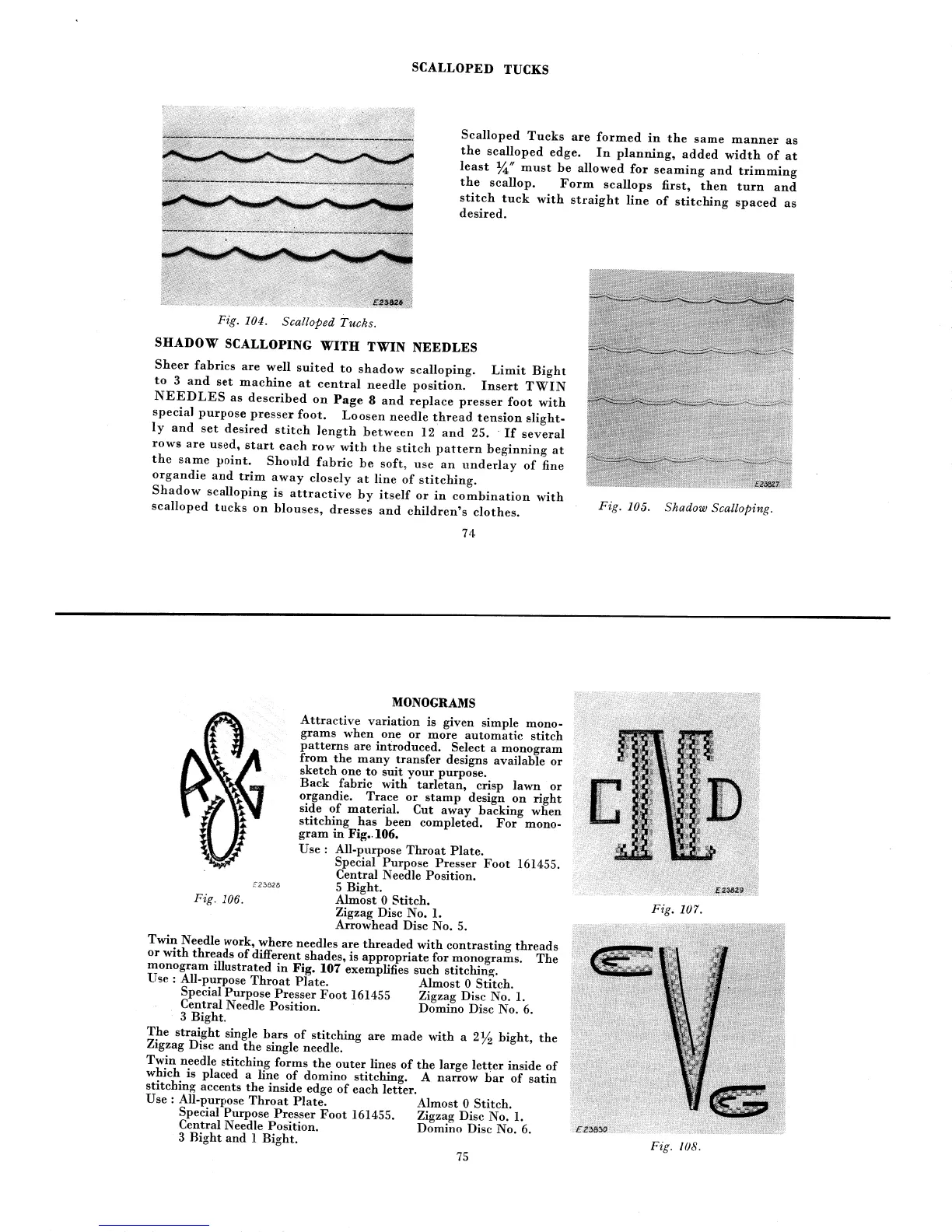Singer Automatic 306K - Scalloped Tucks; Shadow Scalloping with Twin Needles; Monograms