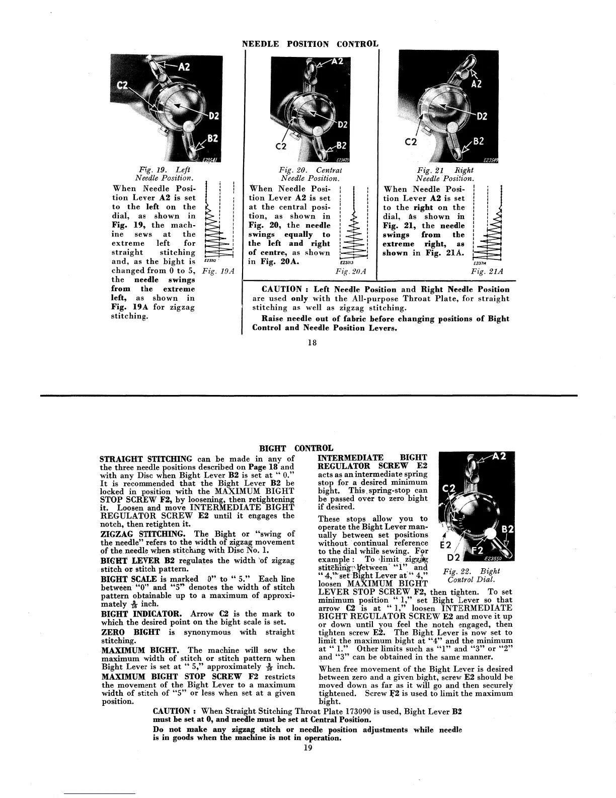Singer Automatic 306K - Needle and Bight Position Adjustment; Controlling Needle Position; Adjusting Zigzag Stitch Width (Bight)