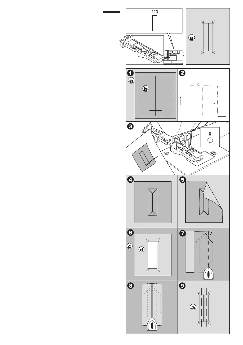 1. Cut a patch of fabric 2.5 cm (1”) wide, 1 cm