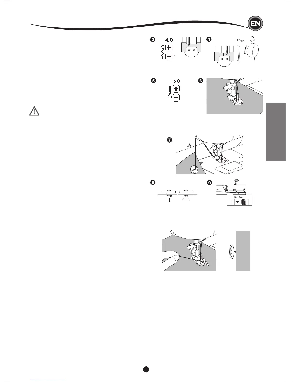 7. Raise the foot and cut the threads remaining about 10 cm (4”)