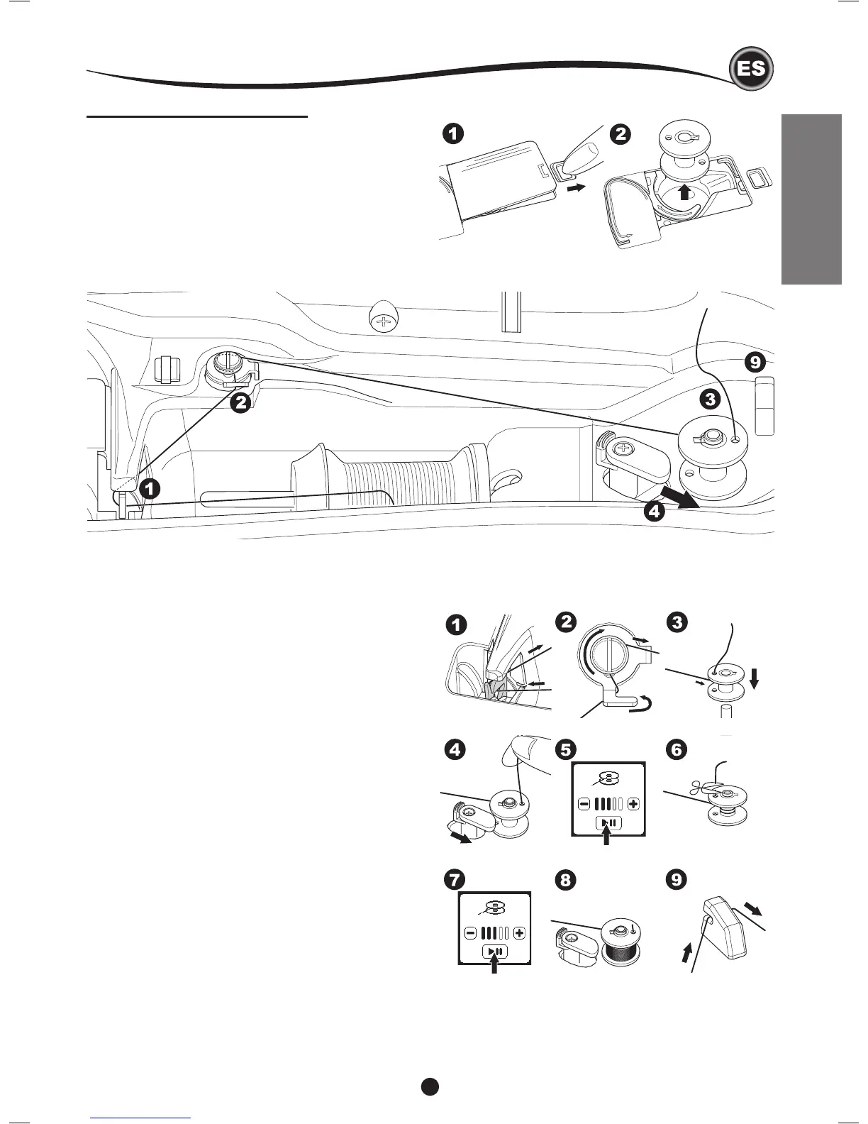 3. Inserte el hilo por el oricio en la bobina y coloque la