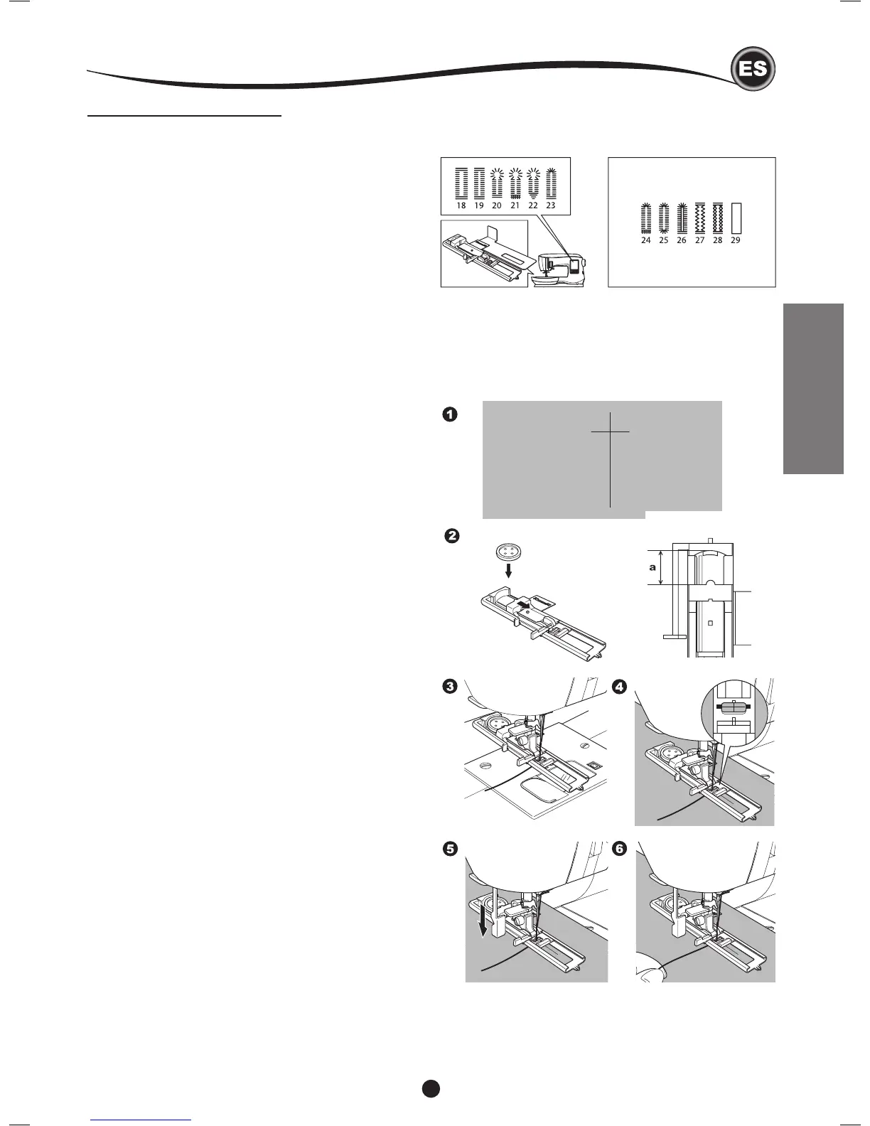 el Pie de Ojales, quite el botón de la base del pie. Ajuste