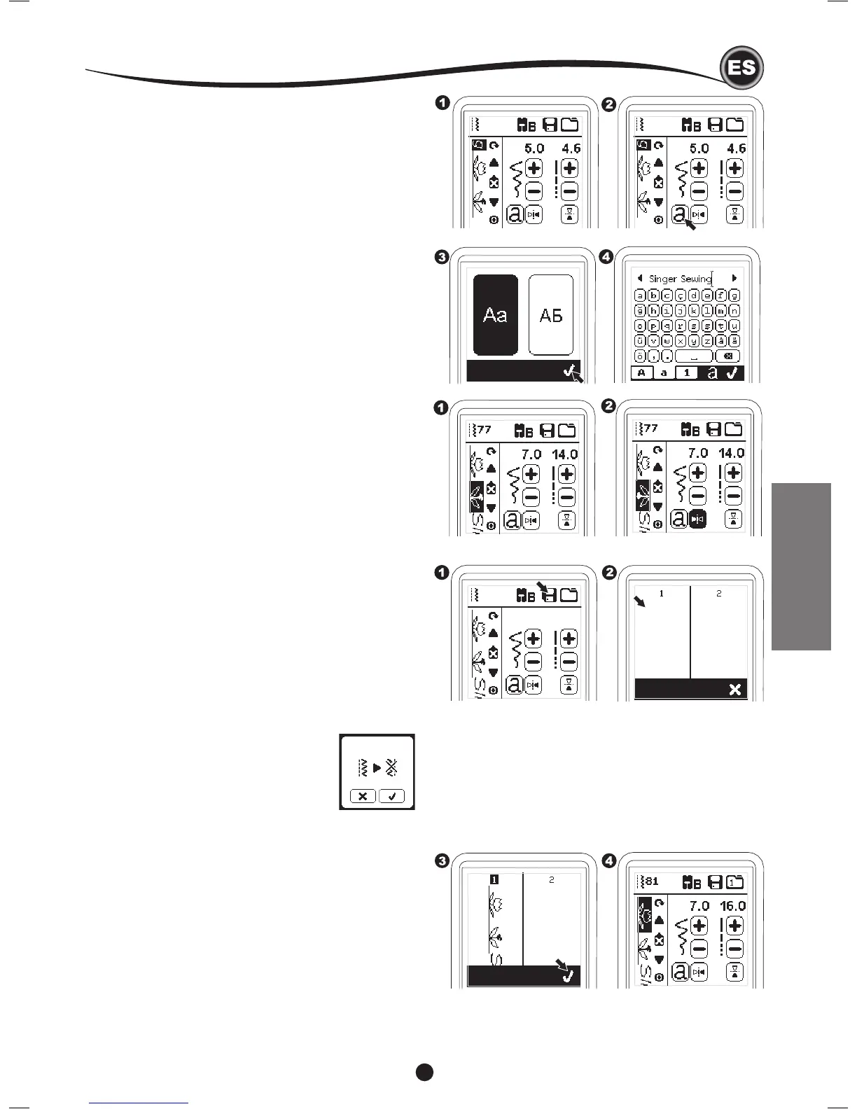 Puede cambiar los ajustes (ancho puntada/largo, espejo,