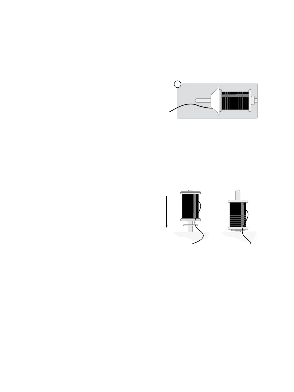 position (the thread spool rotates). Use the horizontal position for normal threads and the vertical position for large spools or specialty