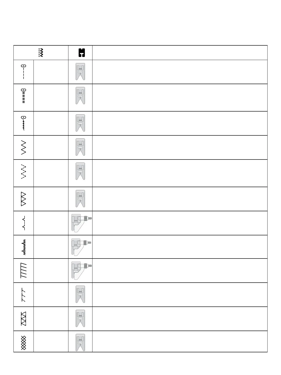 The stitches described in the below chart are utility stitches, used mainly for utility sewing. When sewing, use a thread tension