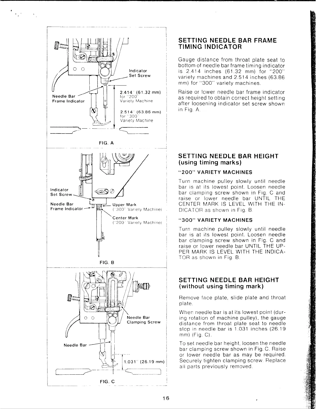 Singer Centurion 121C - NEEDLE BAR SETTINGS; SETTING NEEDLE BAR FRAME TIMING INDICATOR; SETTING NEEDLE BAR HEIGHT