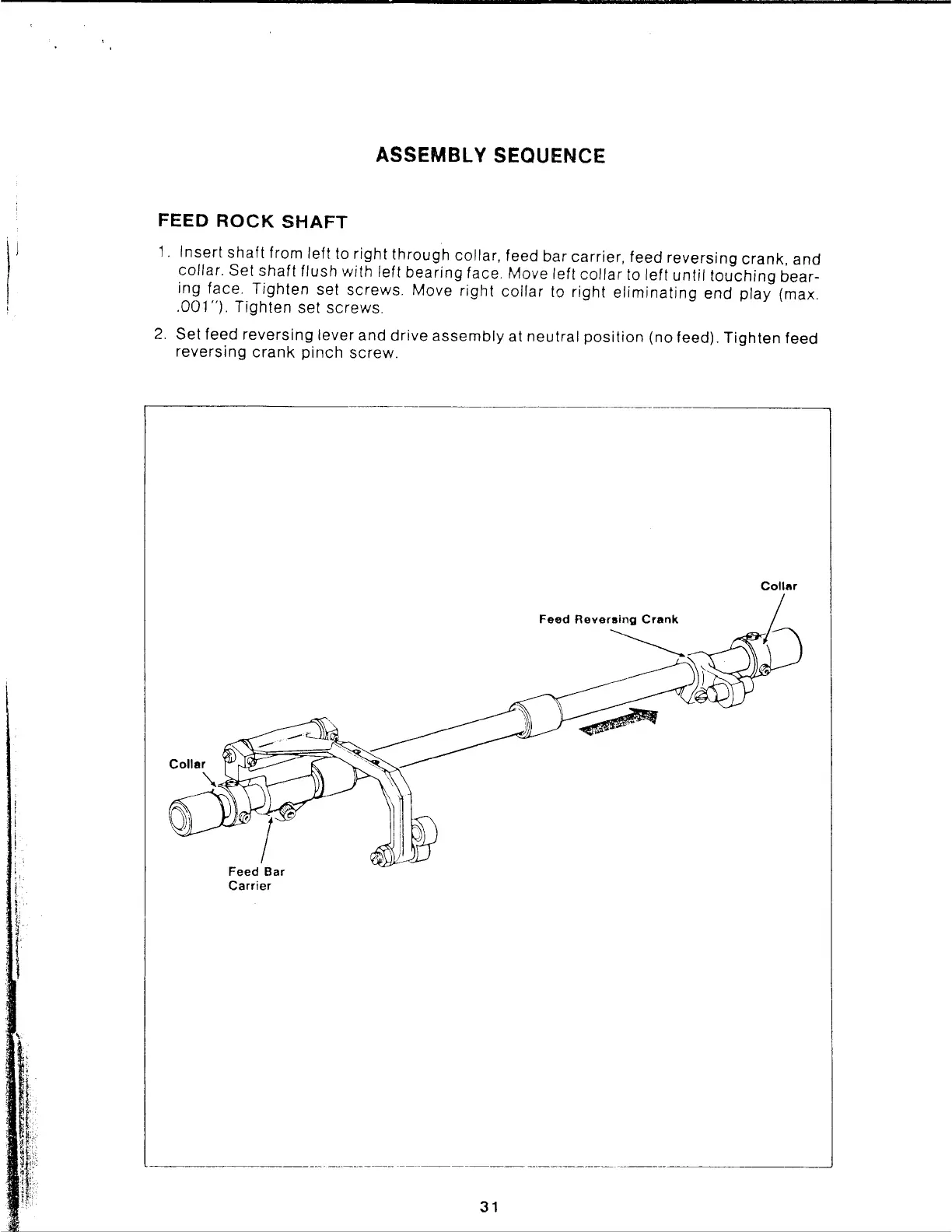 from left to right through collar, feed bar carrier, feed reversing crank,