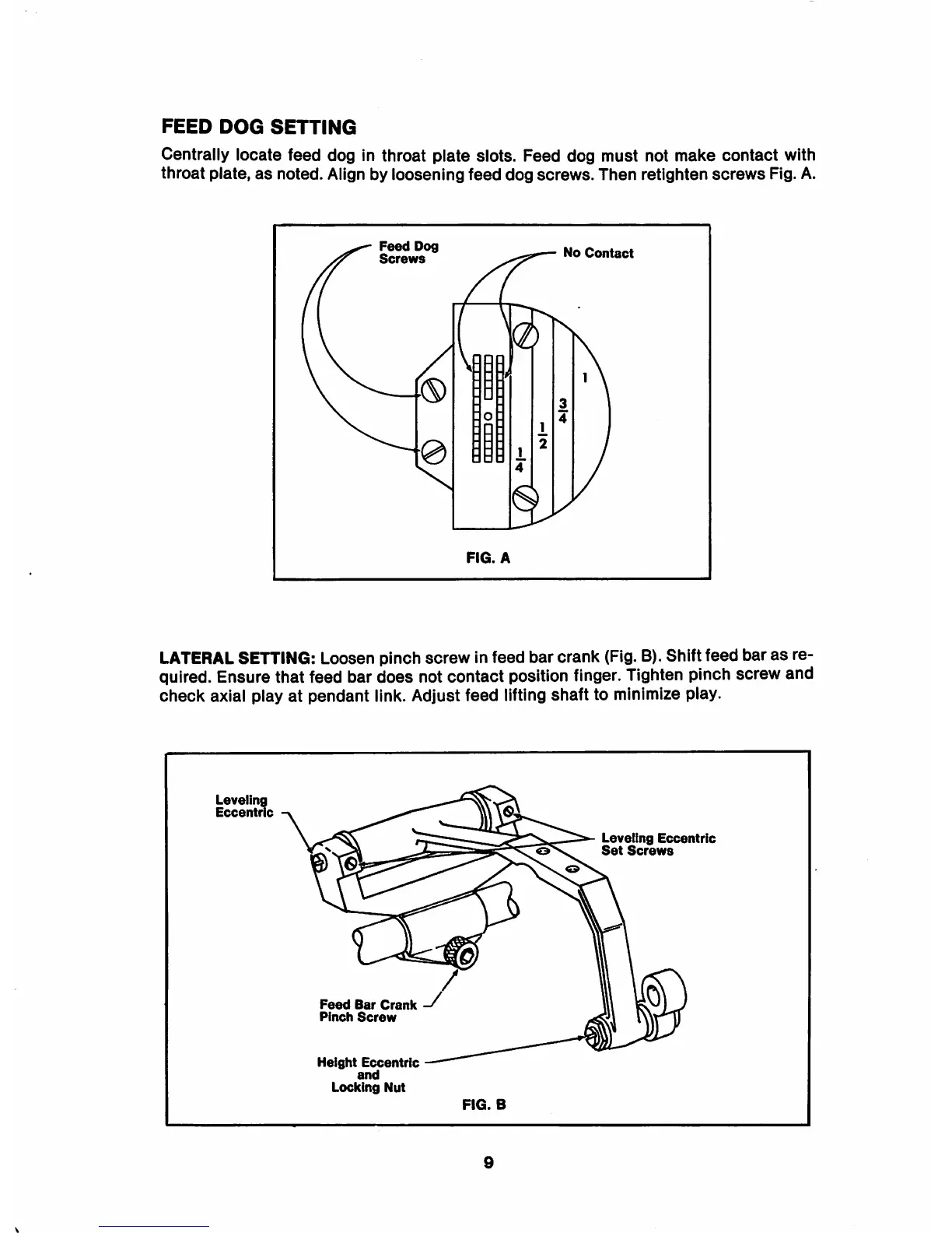 Singer Centurion 121D200A - FEED DOG SETTING; LATERAL FEED DOG SETTING