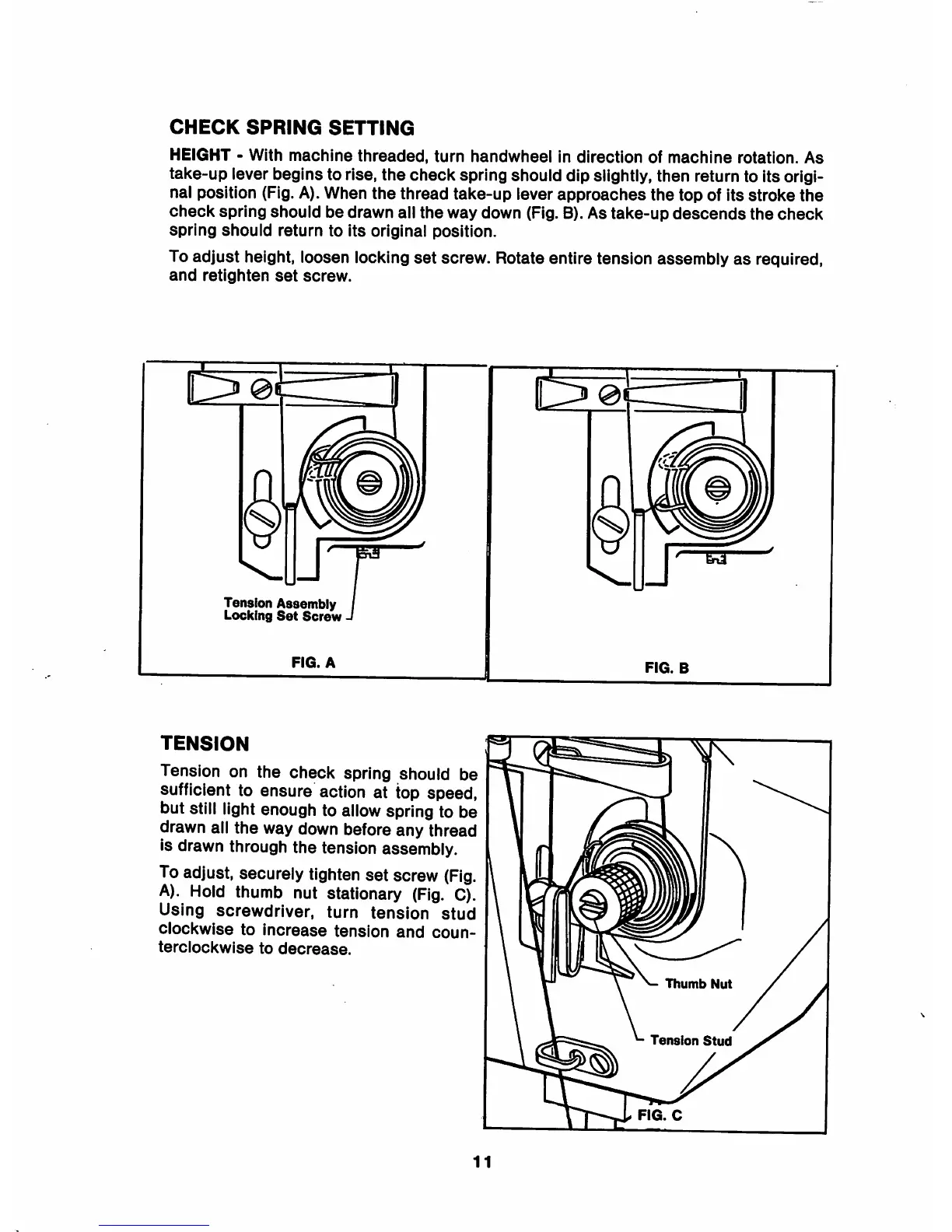 take-up lever begins to rise, the check spring should dip slightly, then return to its origi