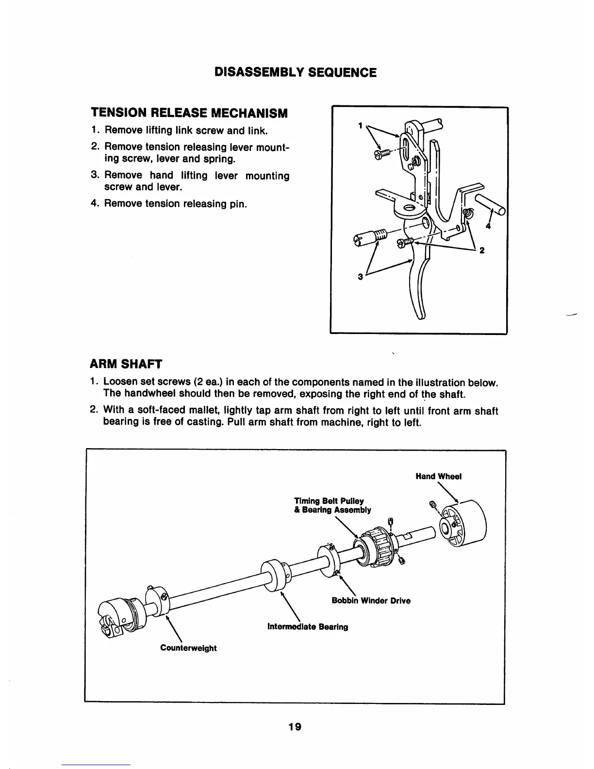 Singer Centurion 121D200A - Tension Release Mechanism; Arm Shaft
