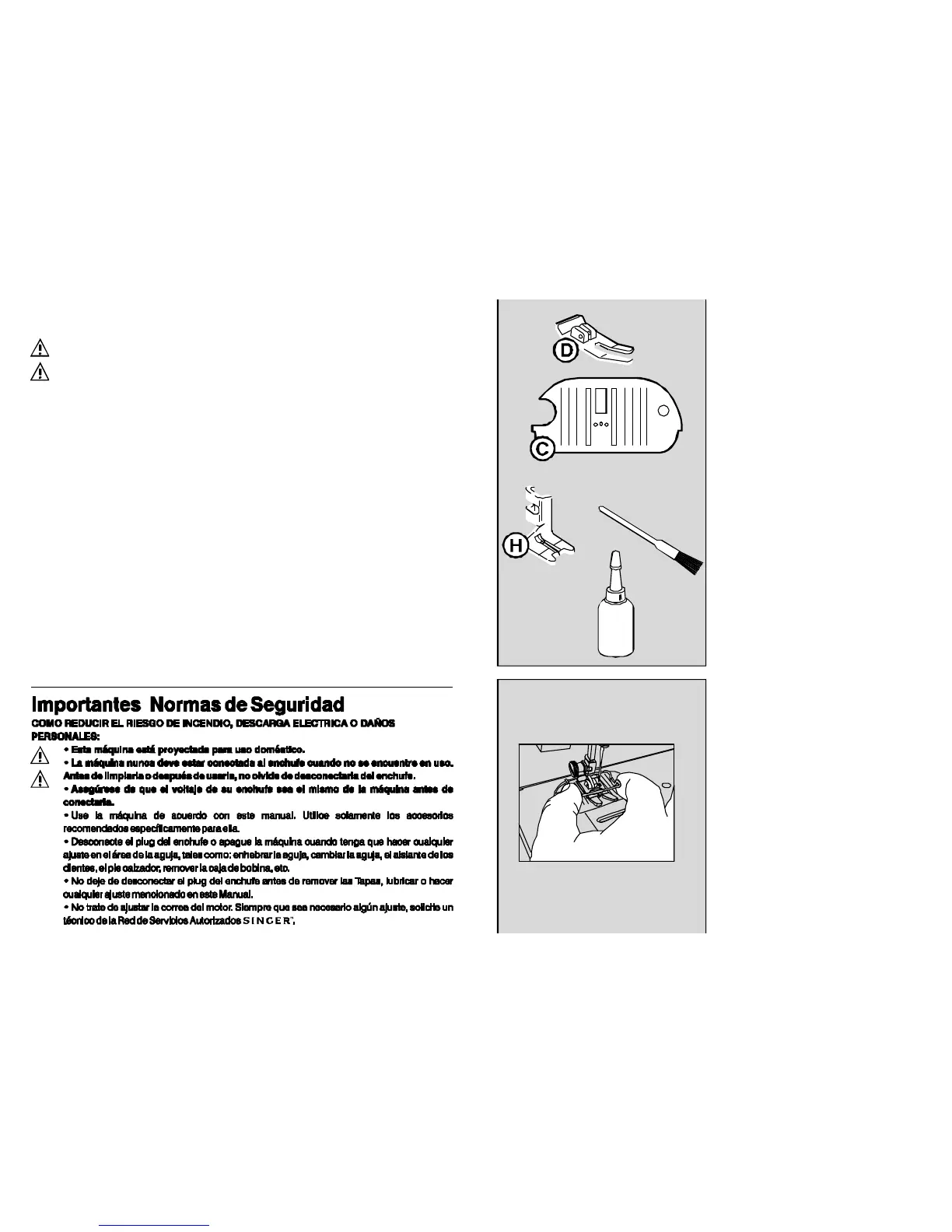 •Donotattempttoadjustthe motorbelt.ContactyournearestauthorizedSINGERService