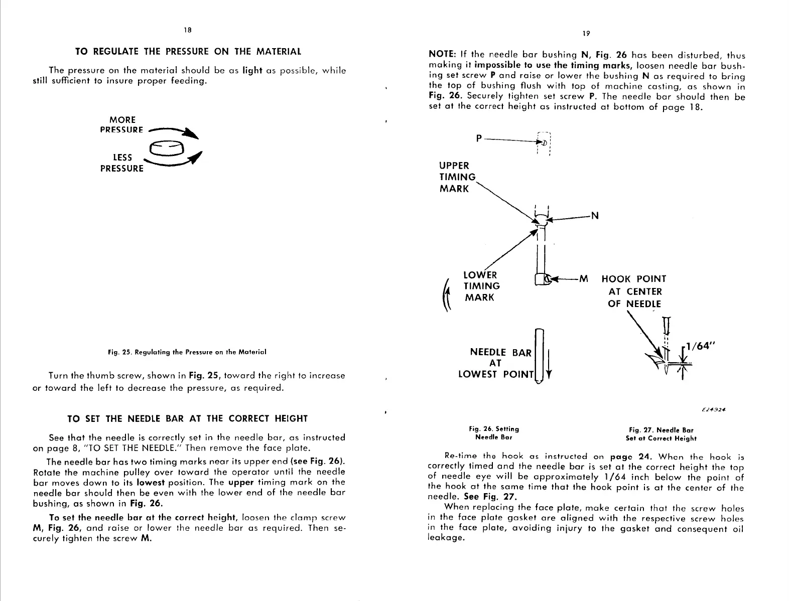 Singer class 251 - Regulating Material Pressure; Setting Needle Bar Height