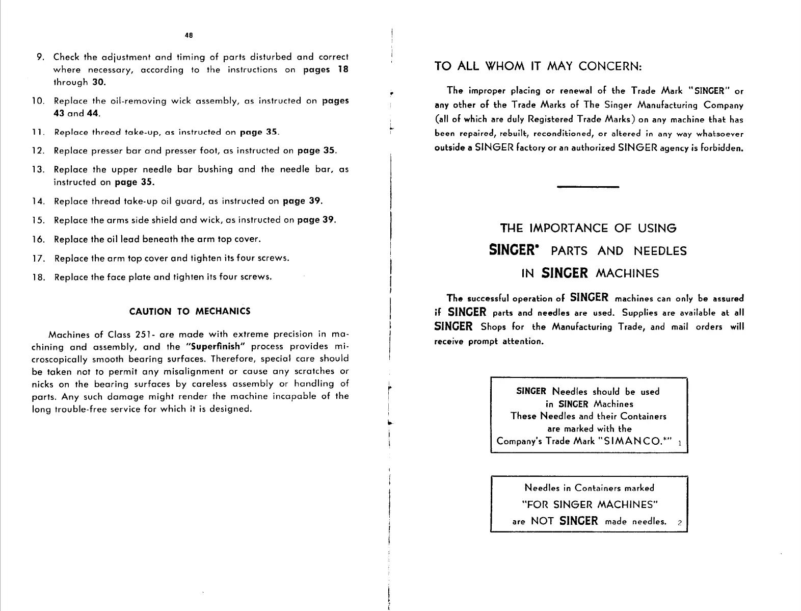 Singer class 251 - Mechanics Cautions; Importance of Singer Parts and Needles