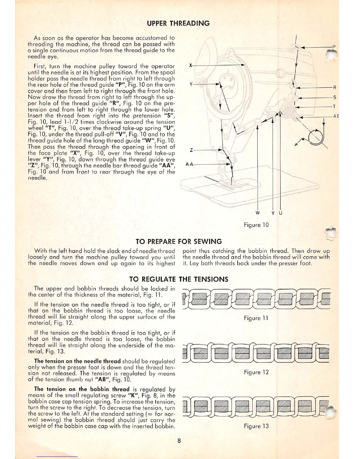 lever "Y", Fig. 10, down through the thread guide eye
