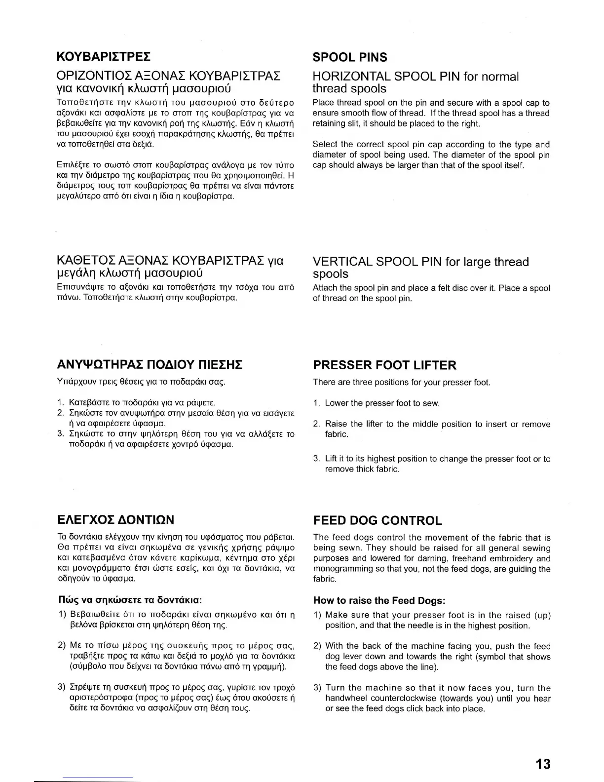 Singer CONFIDENCE 7465 - Horizontal Spool Pin for Normal Thread Spools; Vertical Spool Pin for Large Thread Spools; Presser Foot Lifter; Feed Dog Control