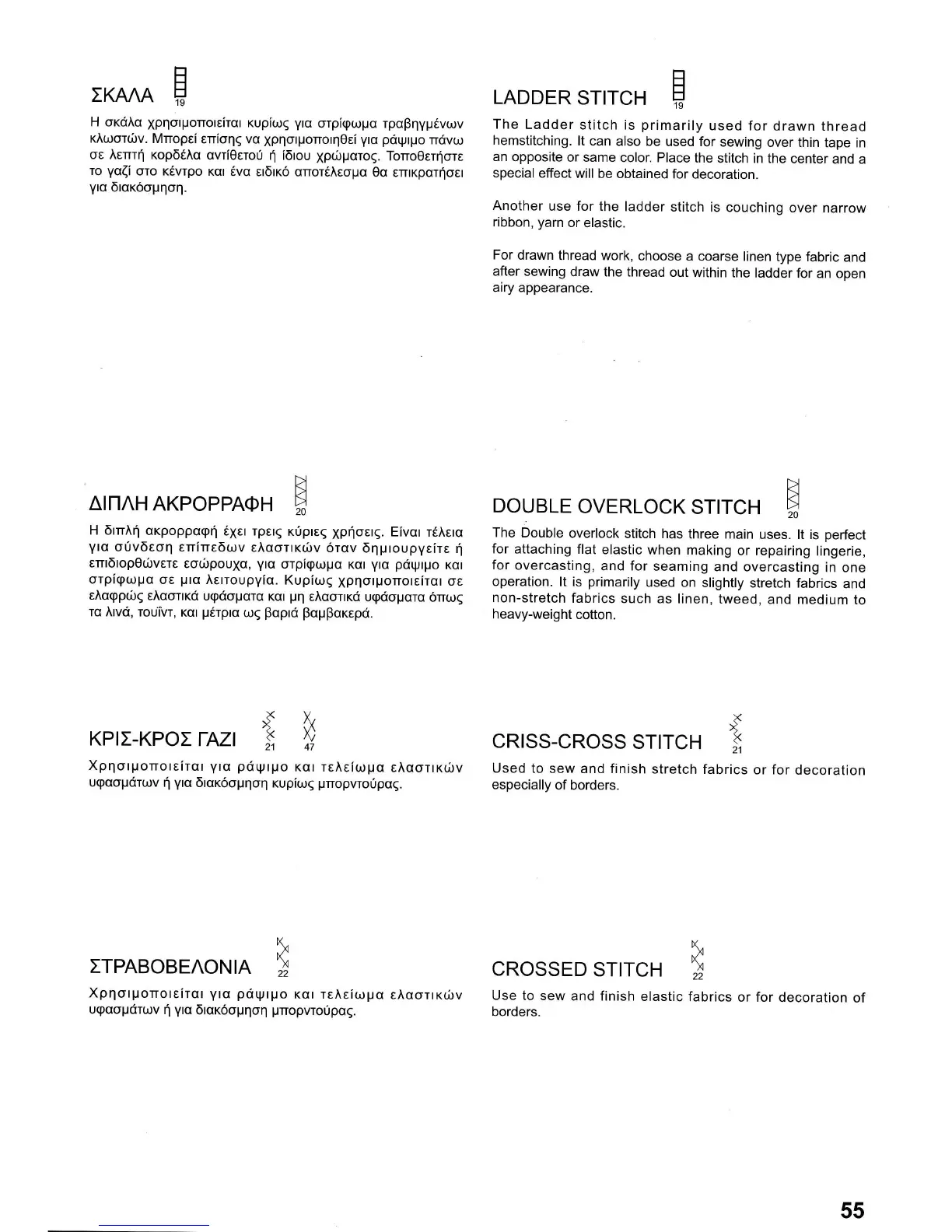 Singer CONFIDENCE 7465 - Ladder Stitch; Double Overlock Stitch; Criss-Cross Stitch; Crossed Stitch