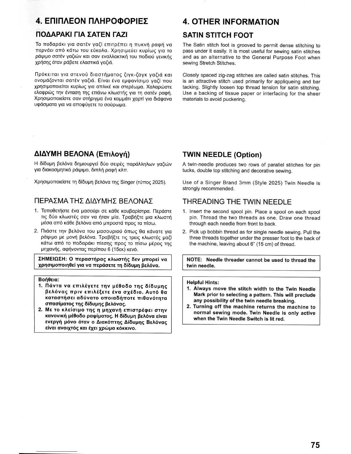 Singer CONFIDENCE 7465 - Satin Stitch Foot; Twin Needle; Thread the Twin Needle