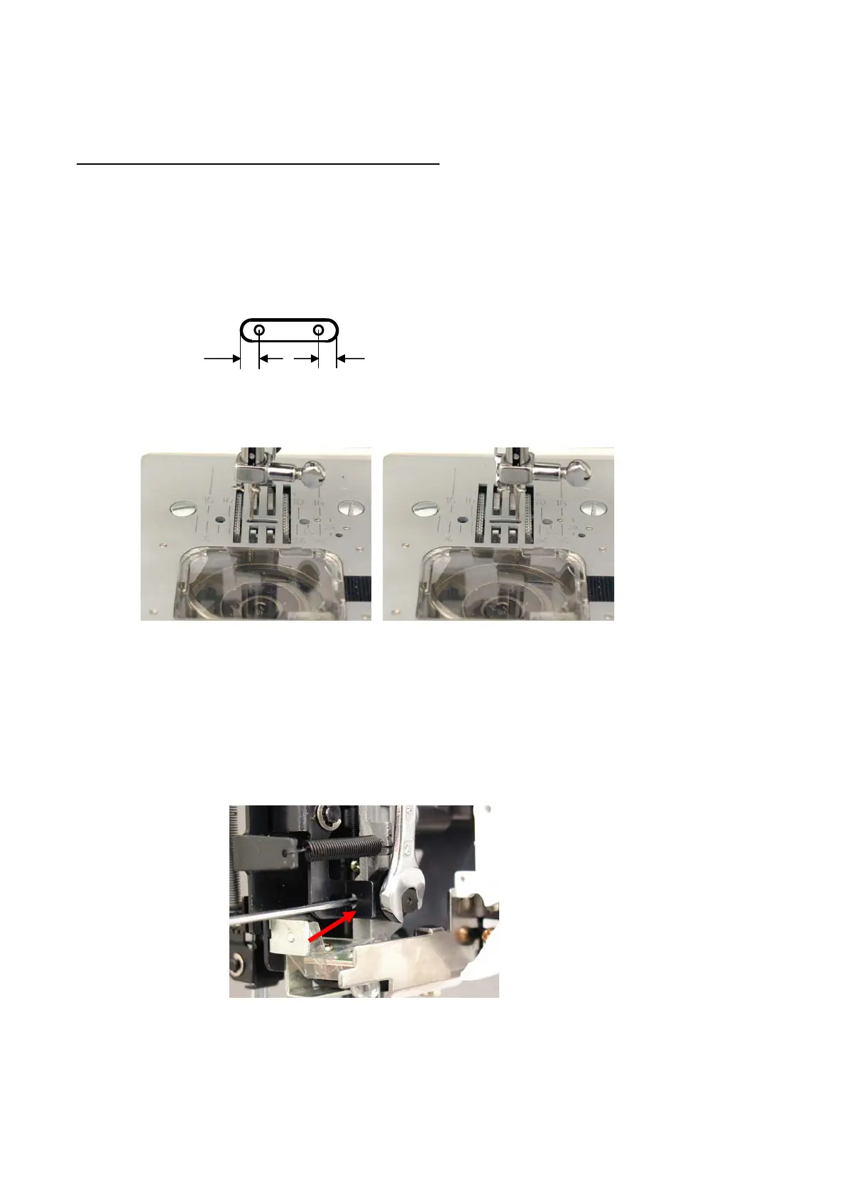 2. Turn hand wheel by hand and see if needle leaves the same clearance at both right