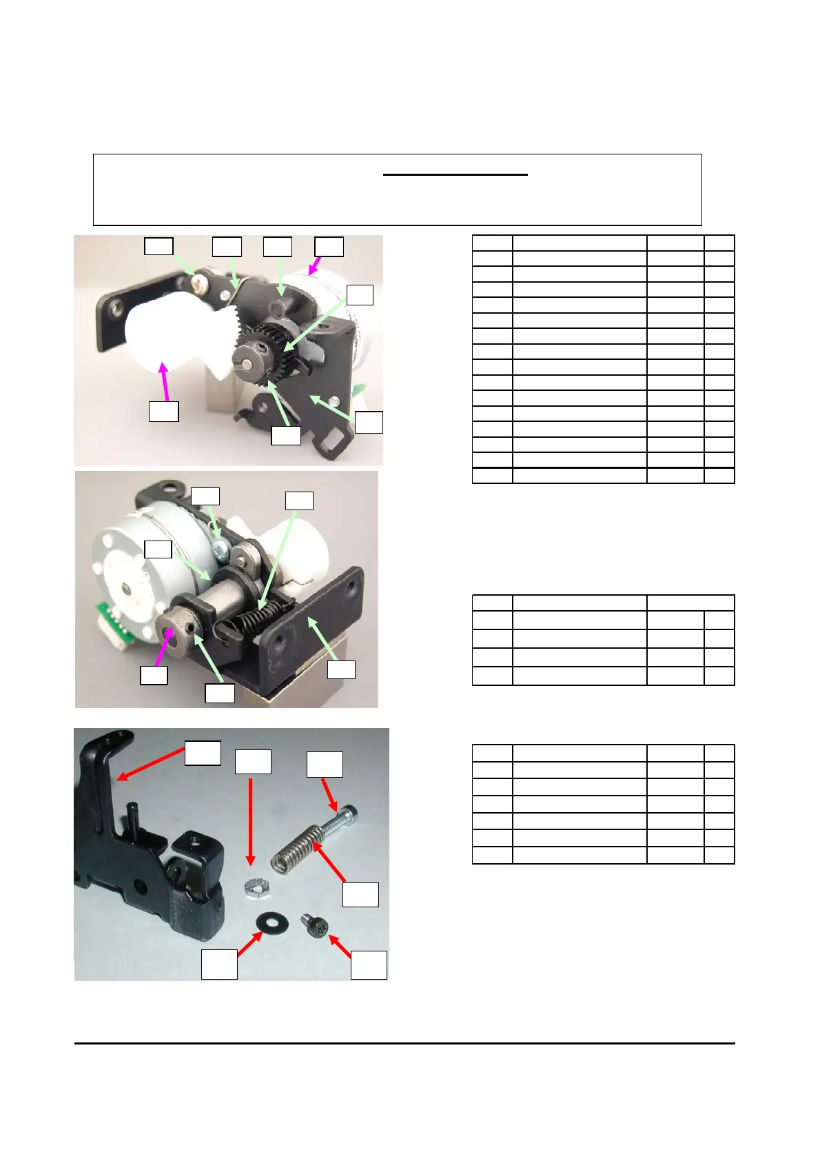 Parts list for feed control unit of half-step version