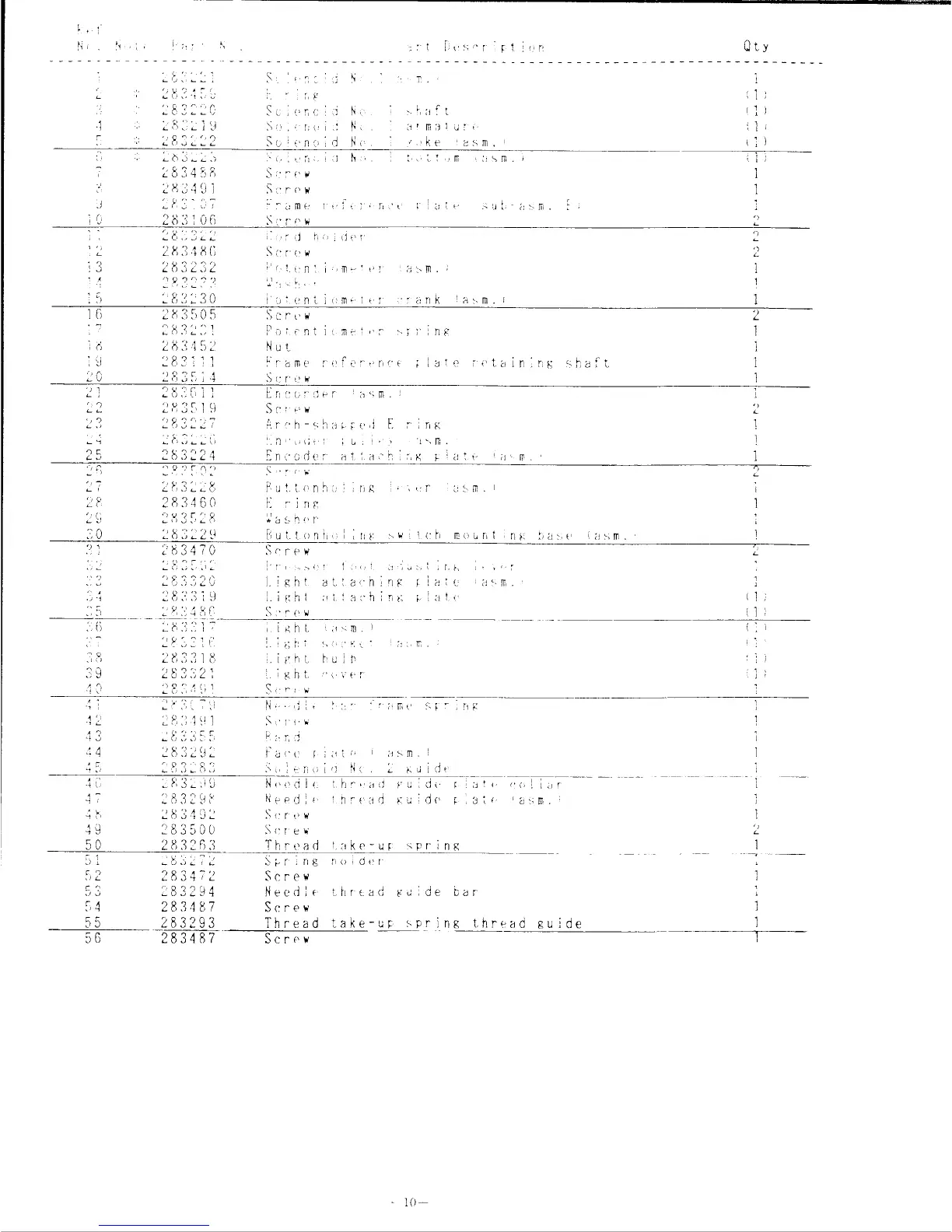 Singer CXL - Face Plate, Encoder, Solenoid No.1 Parts List