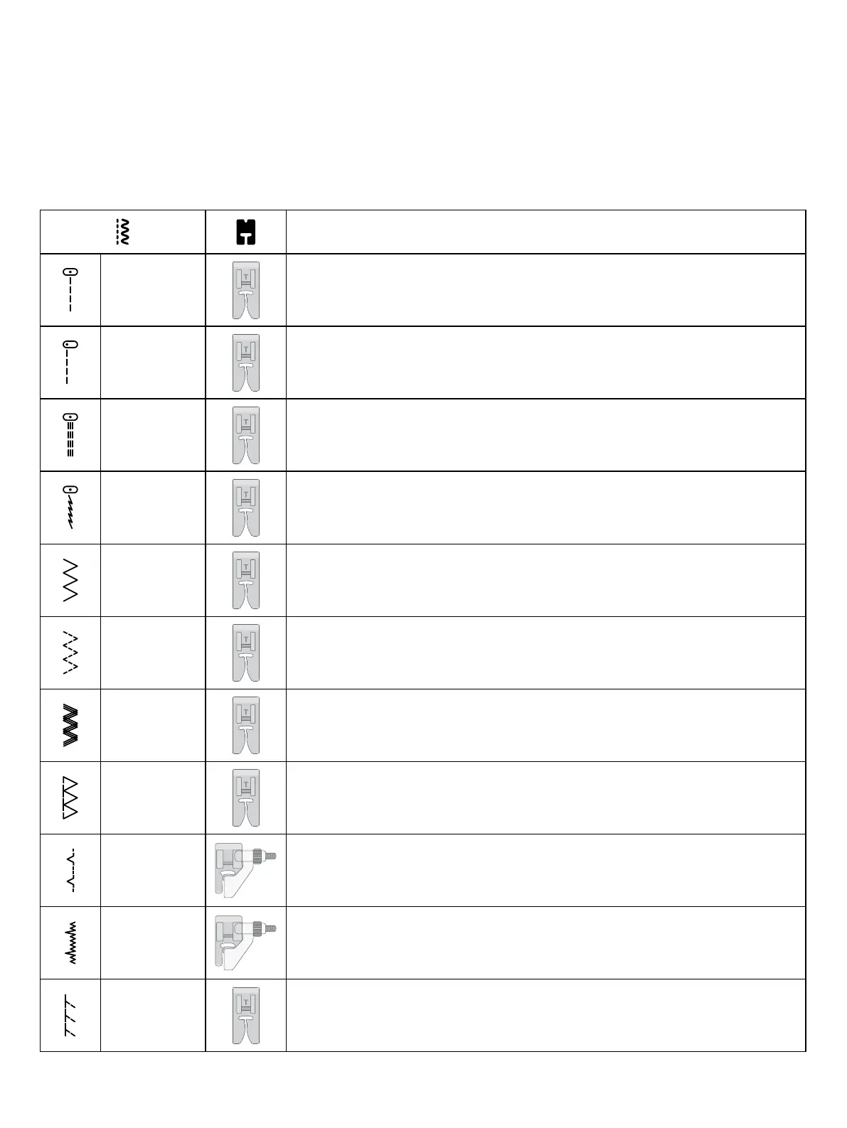 The stitches described in the below chart are utility stitches, used mainly for utility sewing.