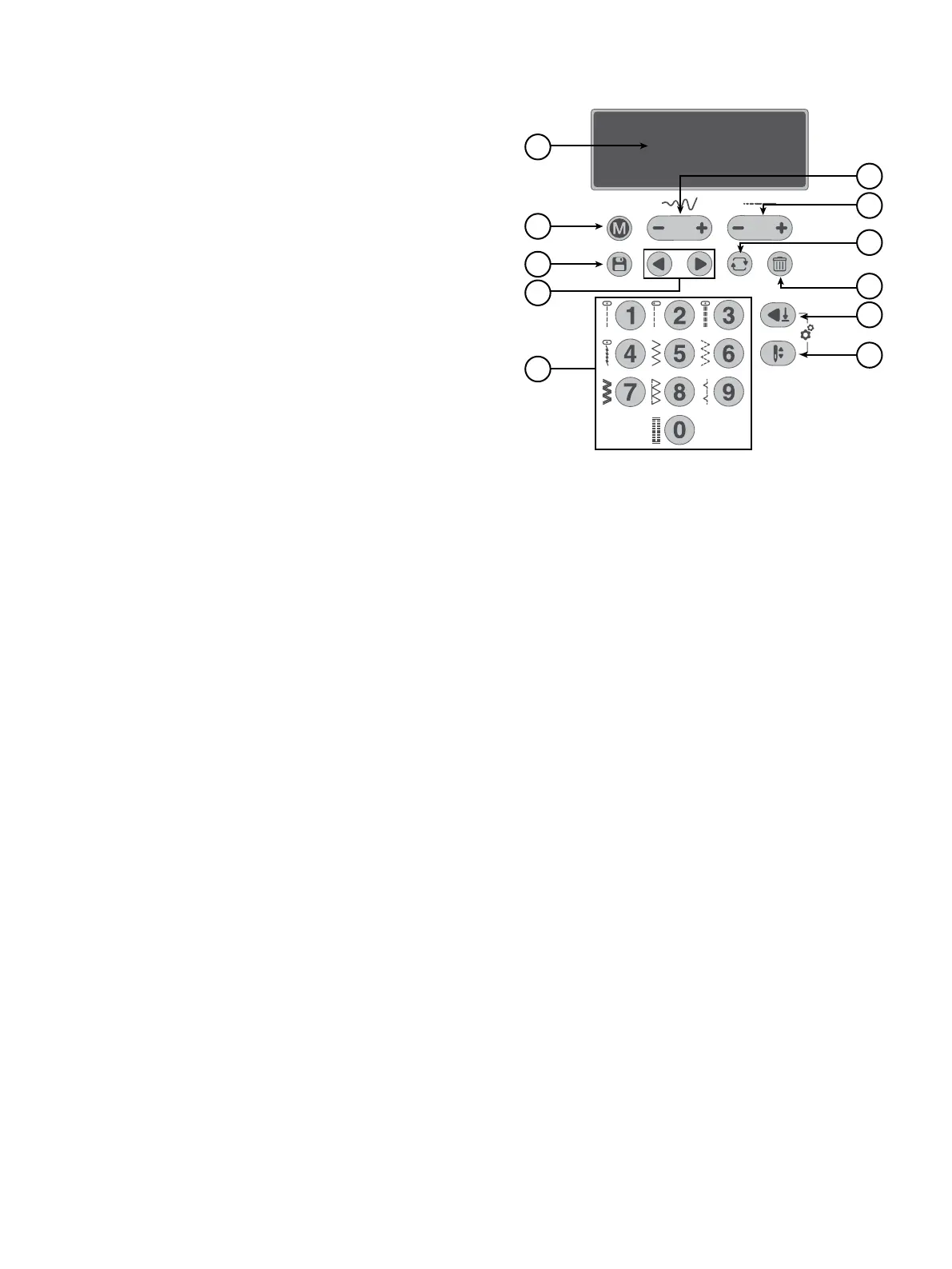 pressing “+”, the needle position is moved to the right. When pressing “-”, the needle moves to the left. The current needle position is