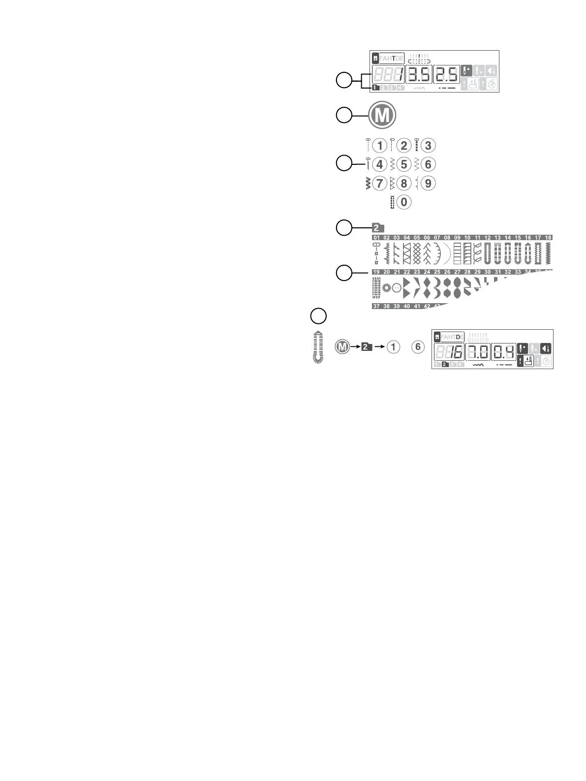 and decorative stitches. Menu 4 is a Font menu. Here, you will