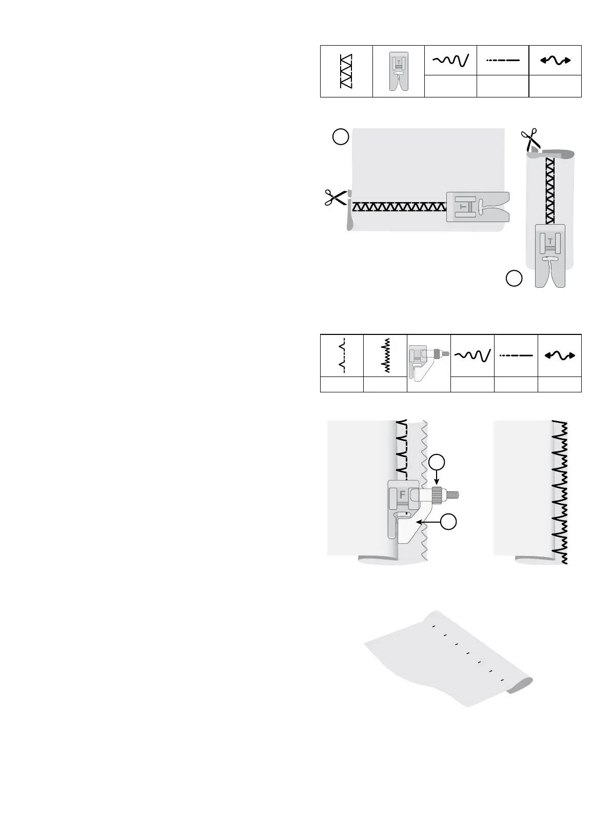 (1), the other for medium to heavy stretch fabric (2).
